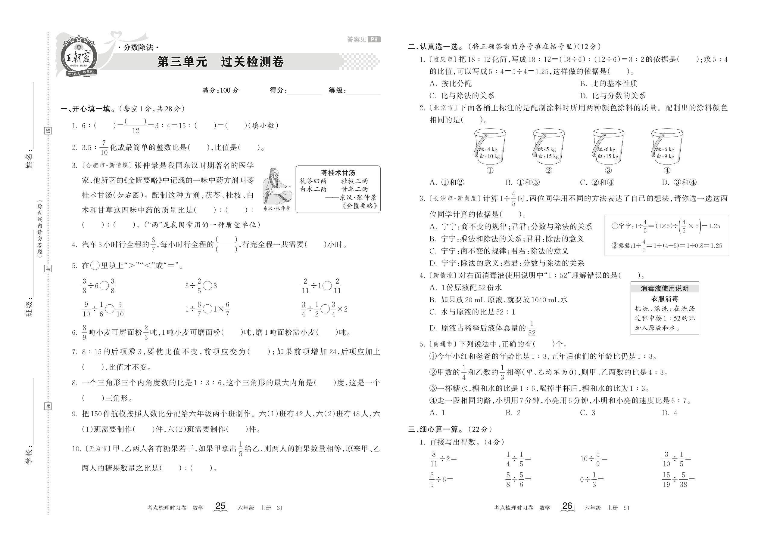 六年级数学苏教版上册单元卷
