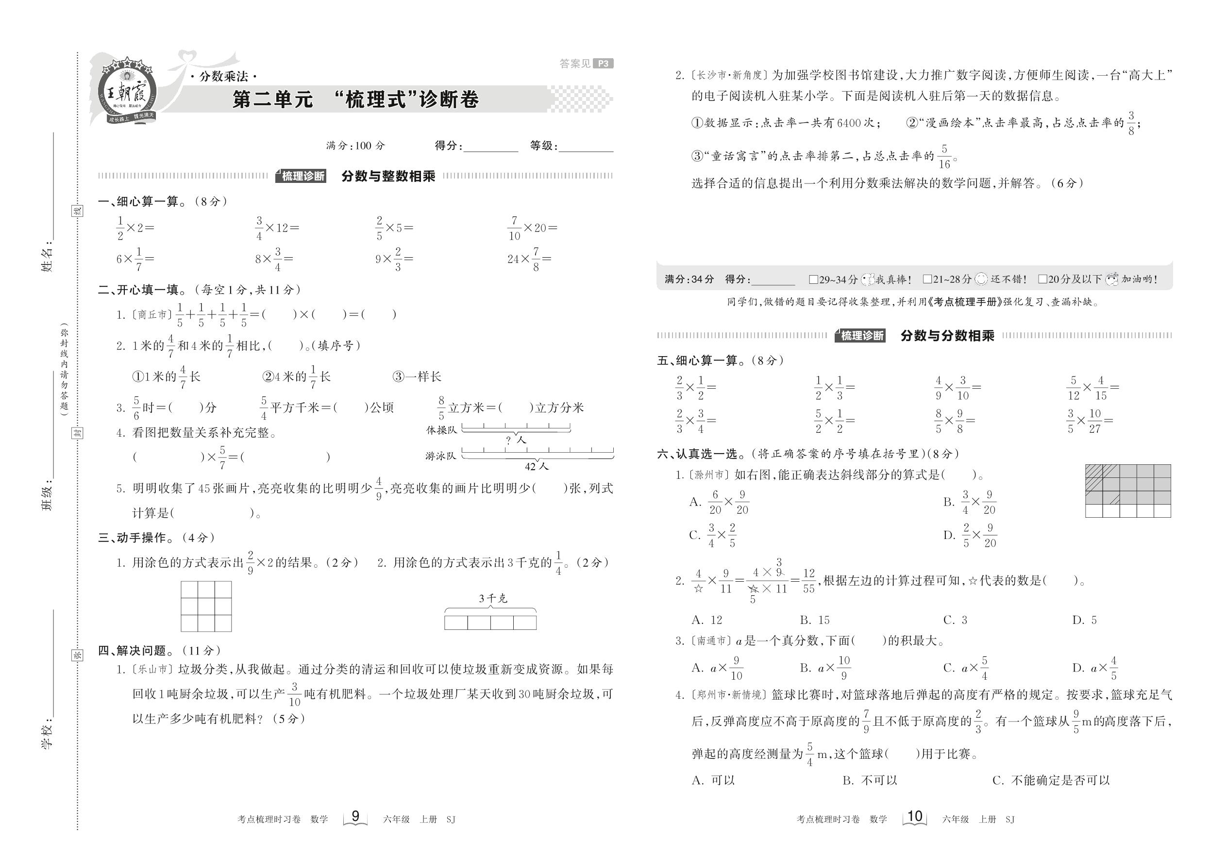 2023上册六年级数学苏教版 第二单元 “梳理式”诊断卷