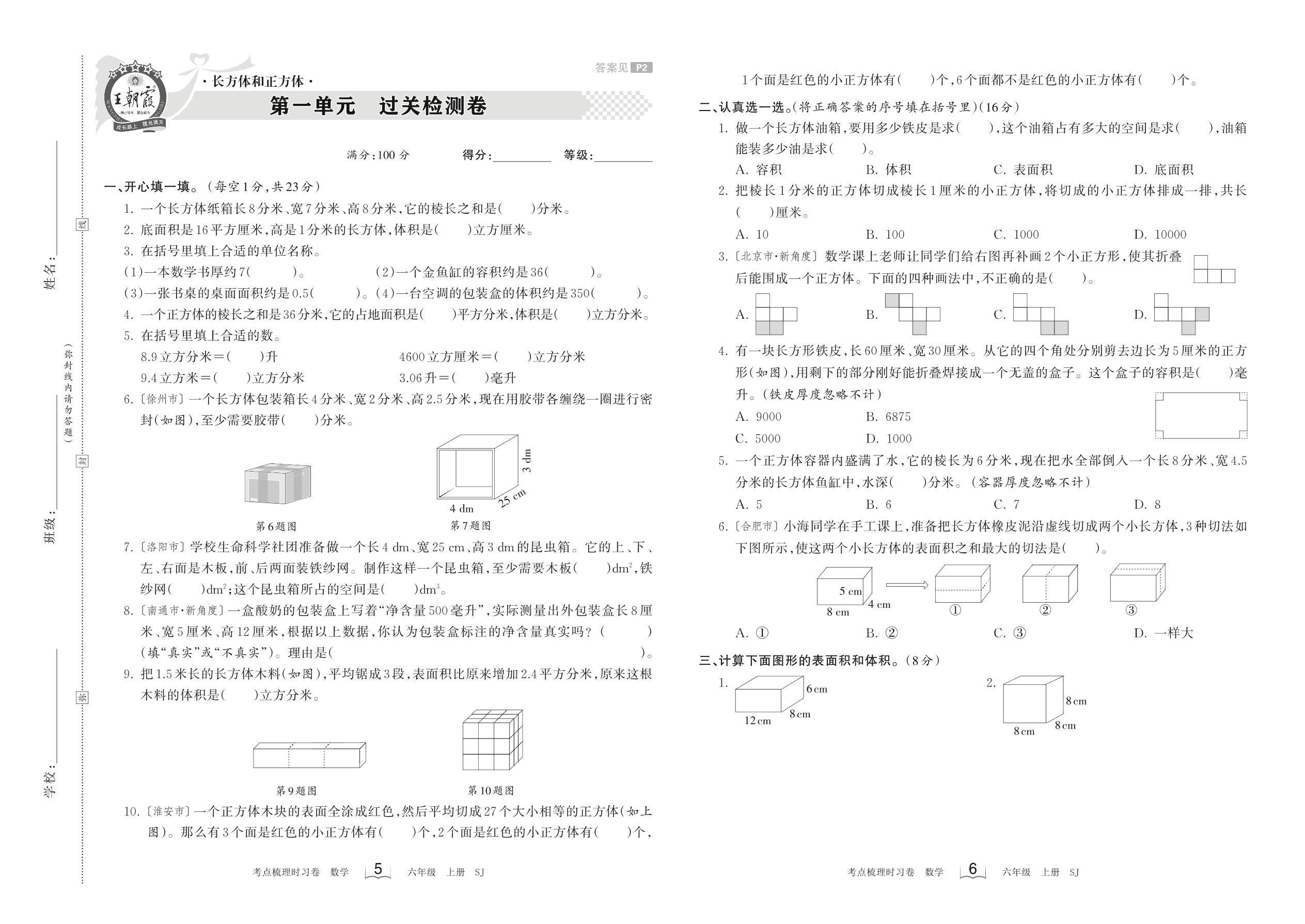 2023上册六年级数学苏教版 第一单元 过关检测卷