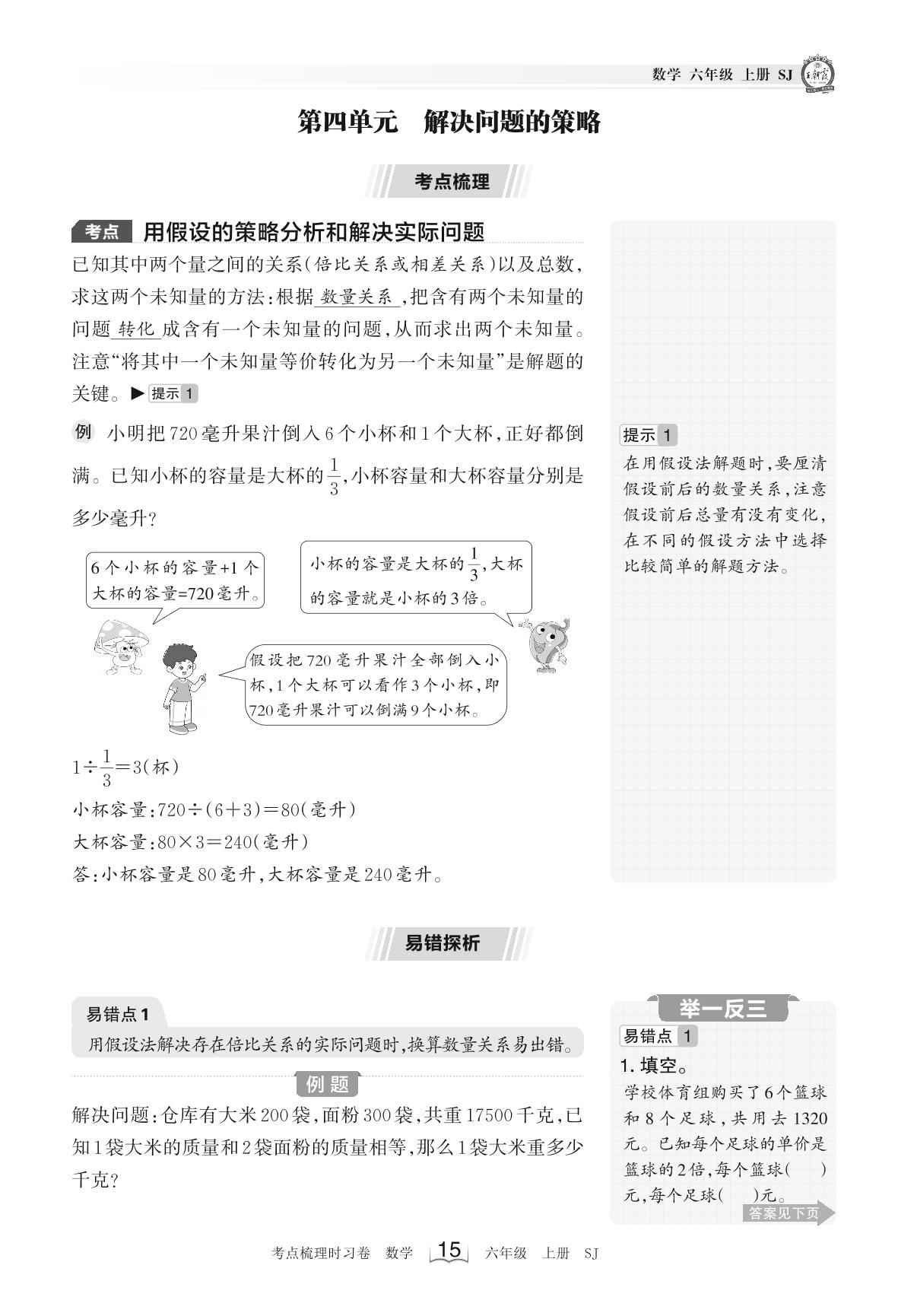 2023上册六年级数学苏教版 考点梳理手册——第四单元 解决问题的策略