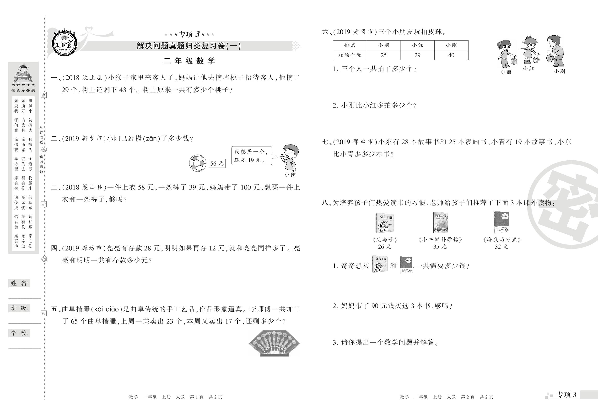 王朝霞期末专项卷——解决问题真题归类复习二年级上册数学(人教版)_R21080393251【0】