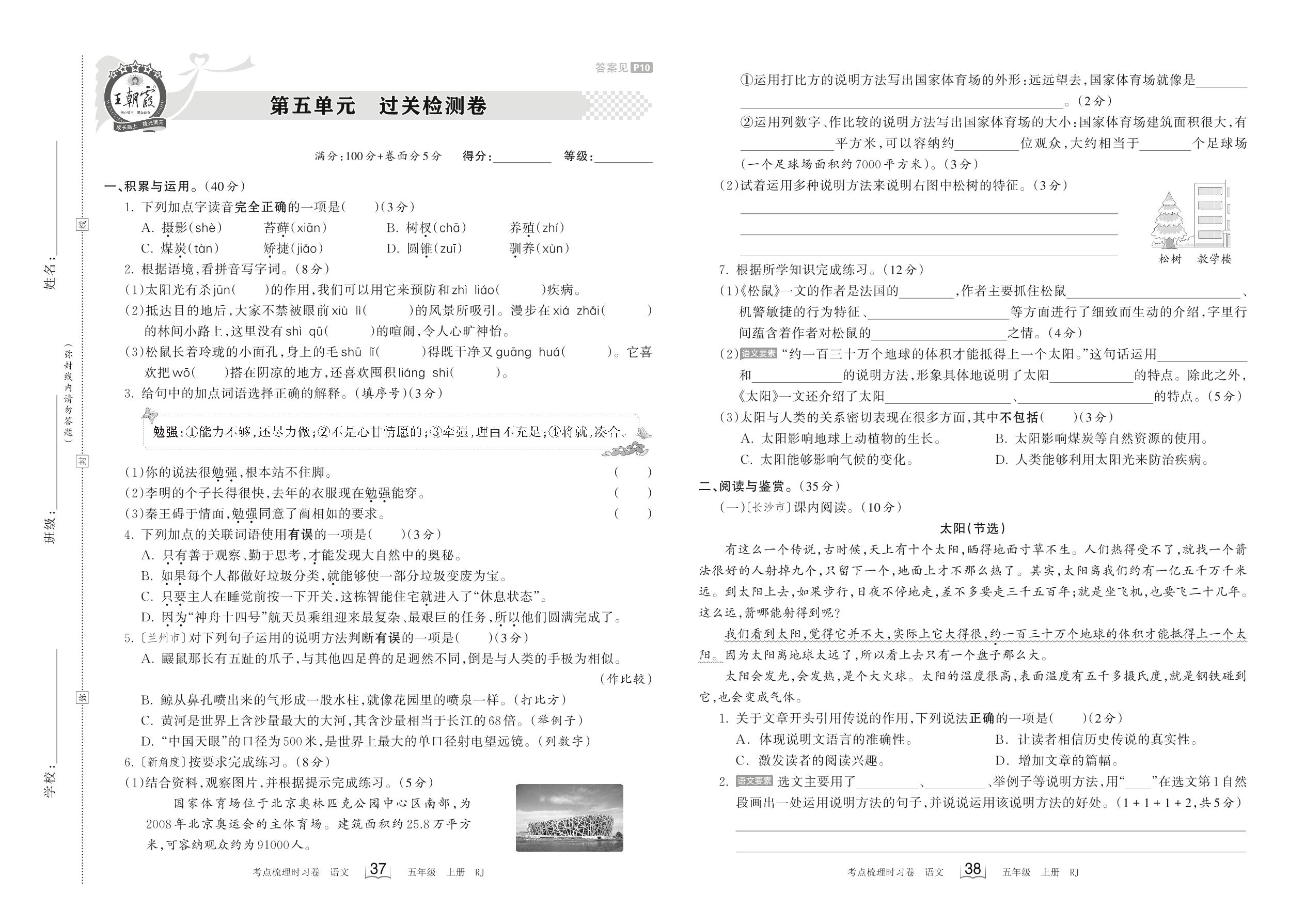 2023上册五年级语文人教版 第五单元 过关检测卷