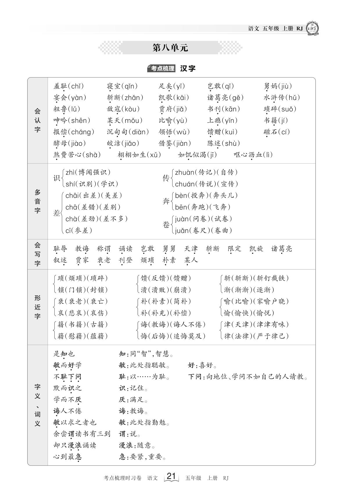 2023上册五年级语文人教版 考点梳理手册——第八单元