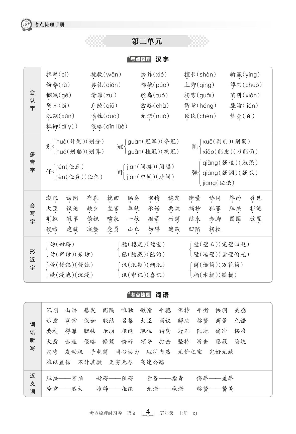 2023上册五年级语文人教版 考点梳理手册——第二单元