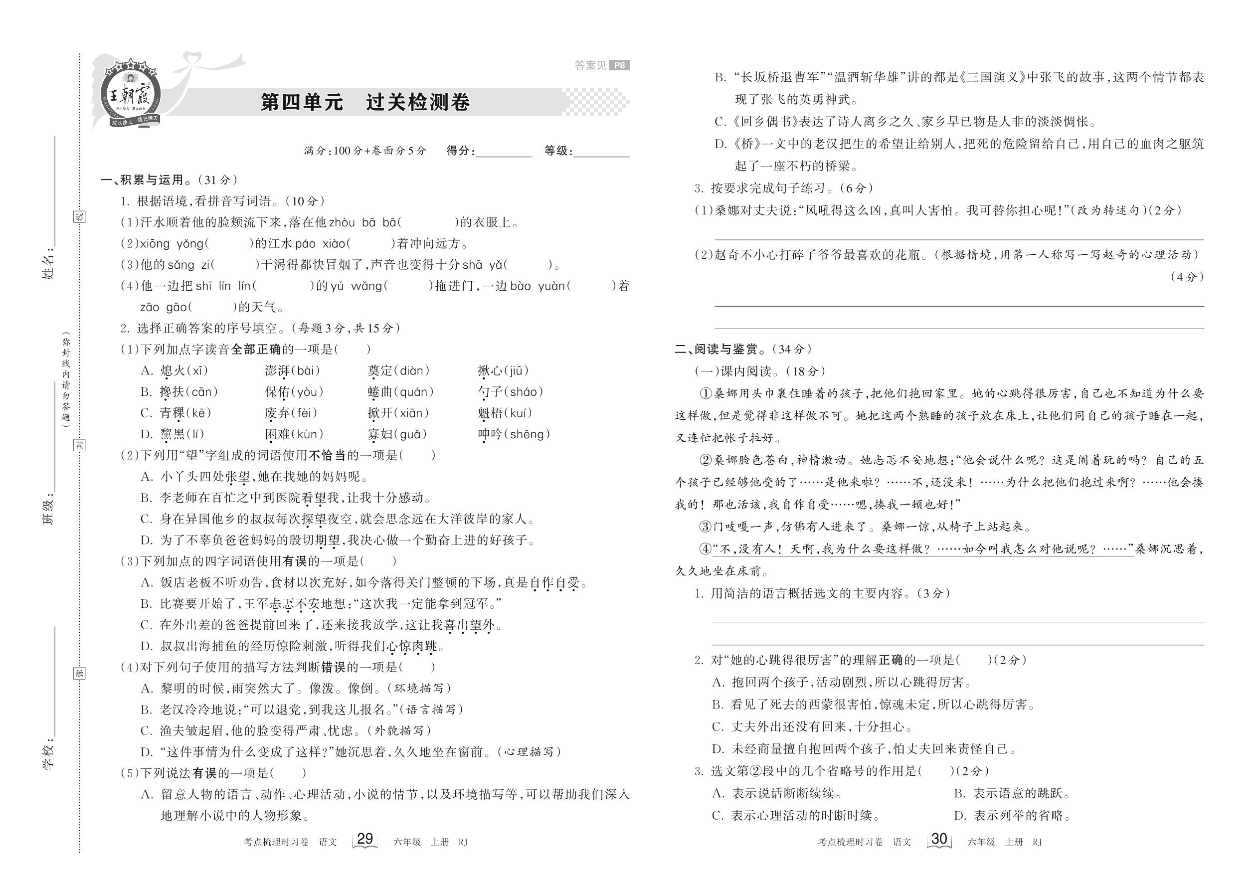 2023上册六年级语文人教版 第四单元 过关检测卷