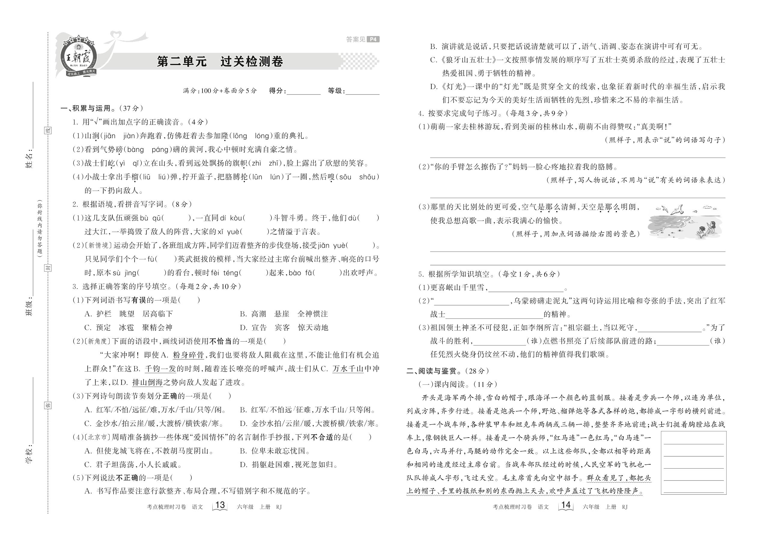 2023上册六年级语文人教版 第二单元 过关检测卷