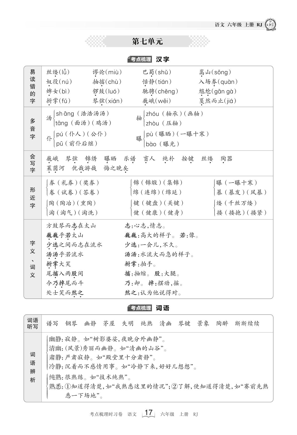 2023上册六年级语文人教版 考点梳理手册——第七单元