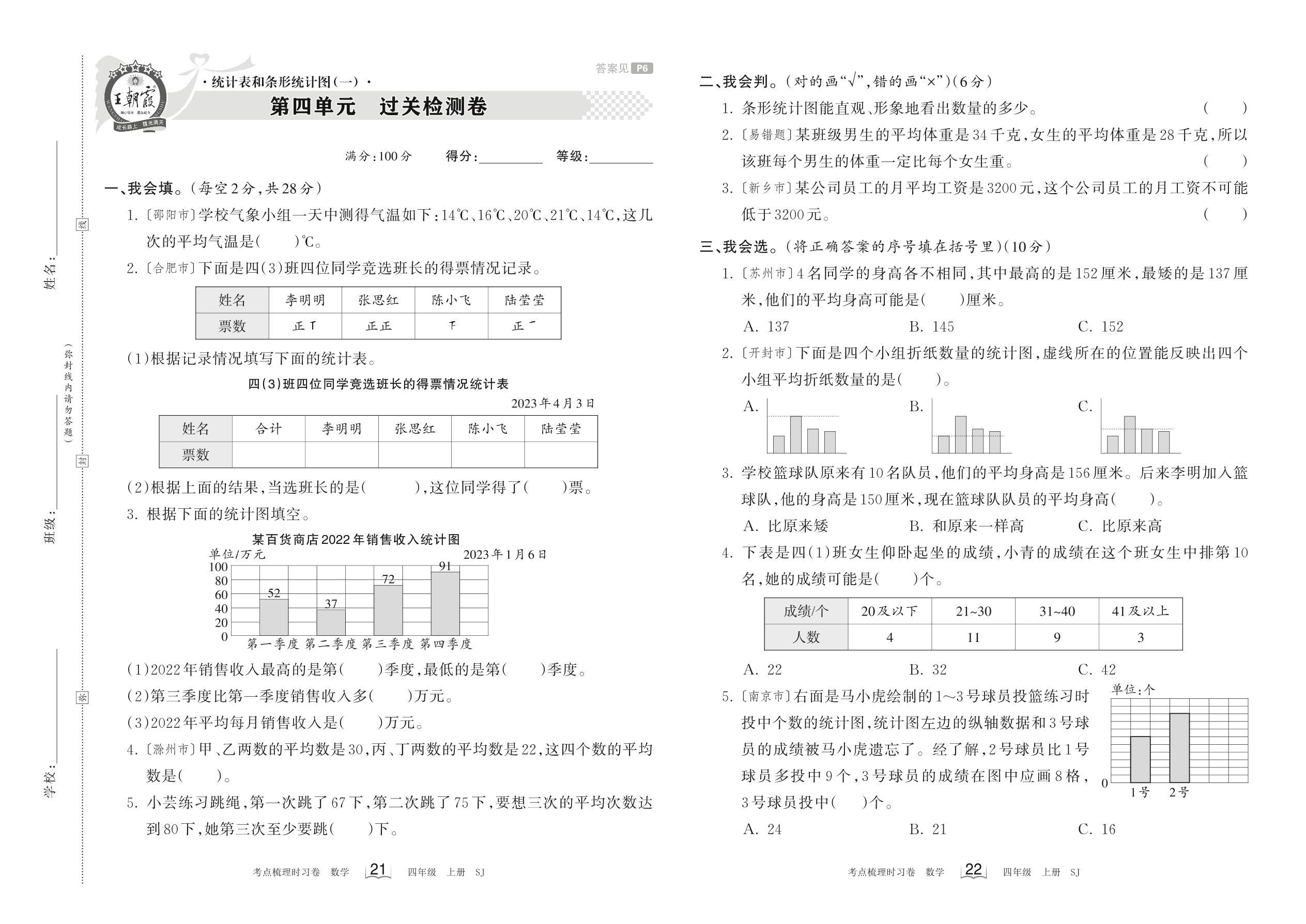 2023上册四年级数学苏教版 第四单元 过关检测卷