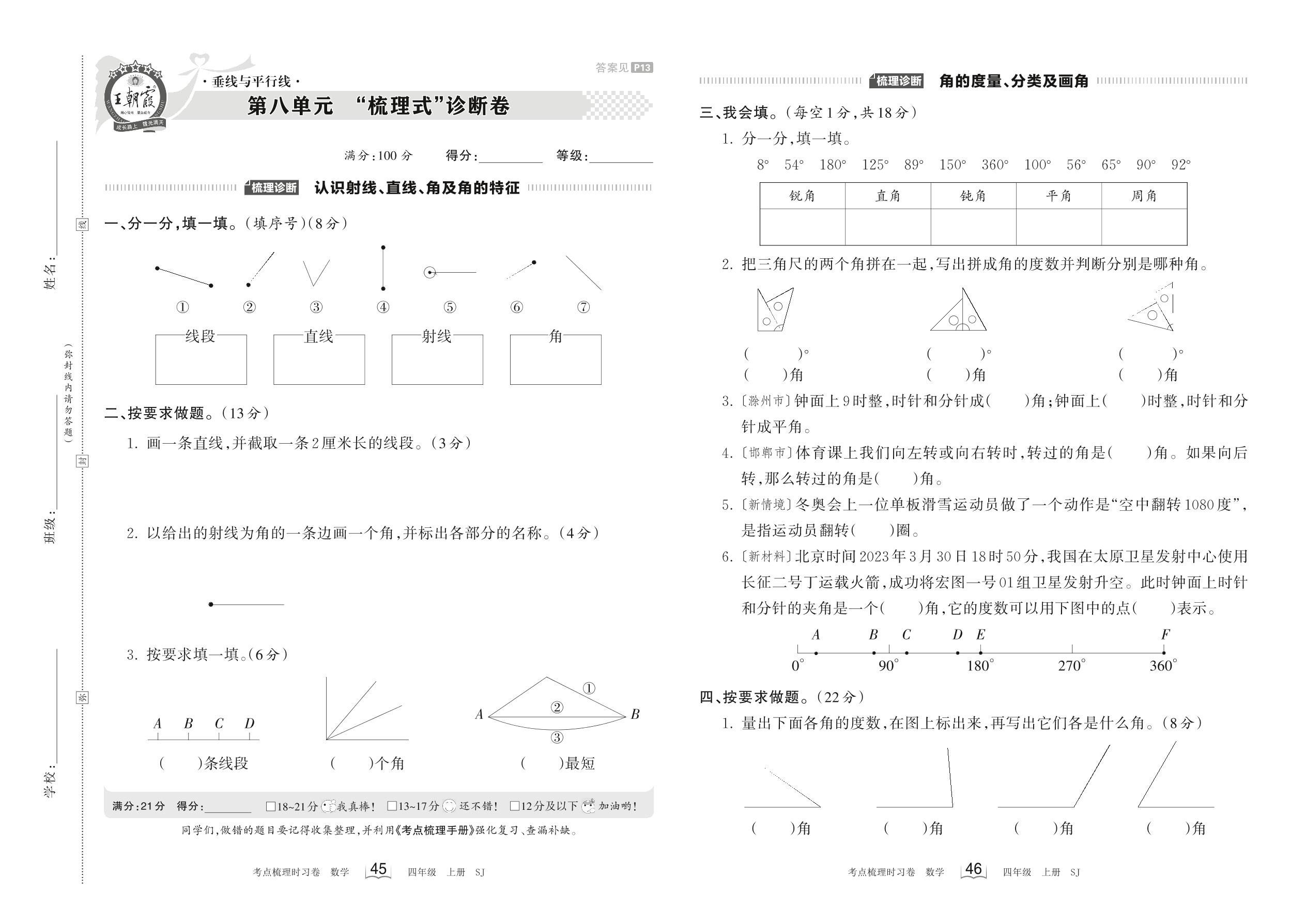 2023上册四年级数学苏教版 第八单元 “梳理式”诊断卷