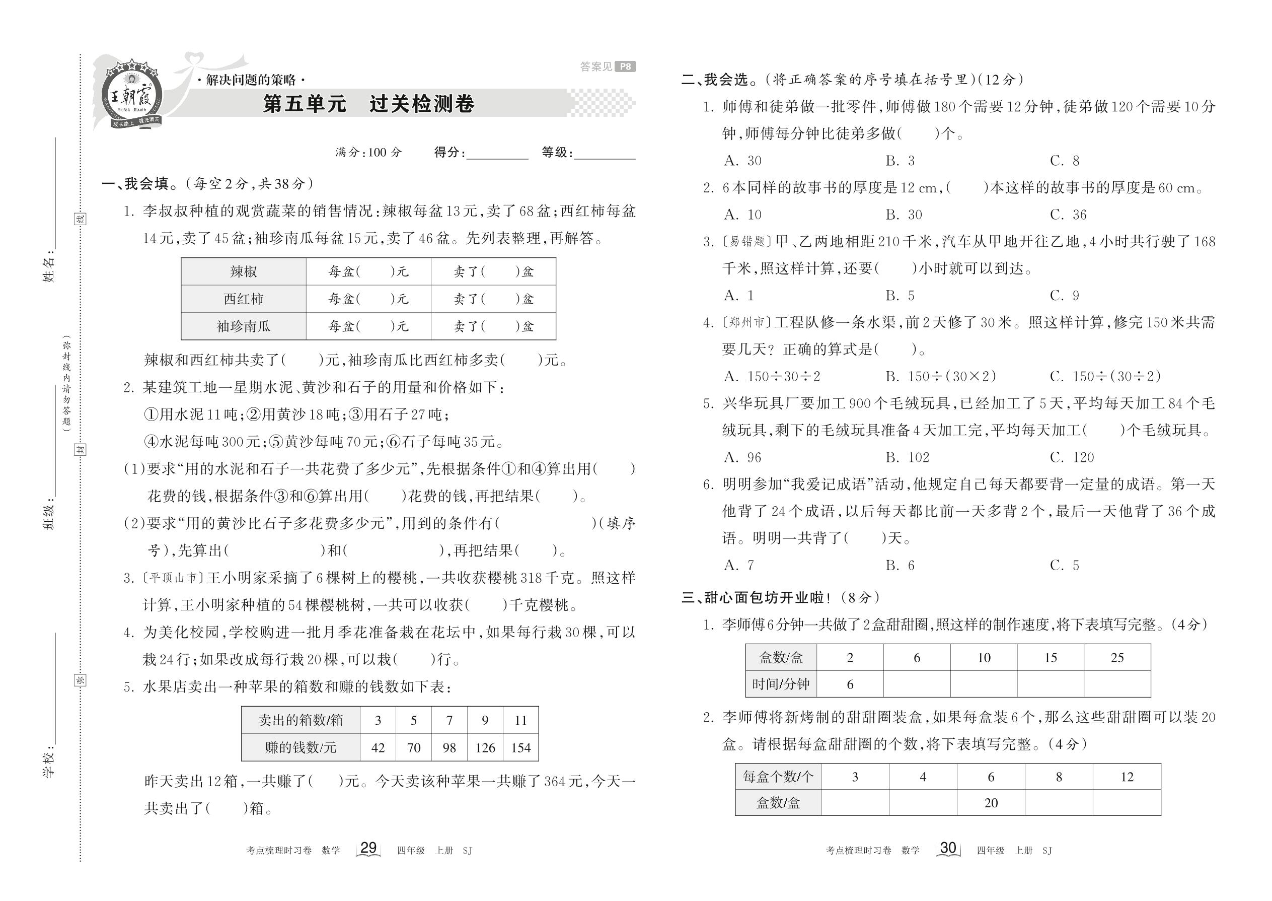 2023上册四年级数学苏教版 第五单元 过关检测卷