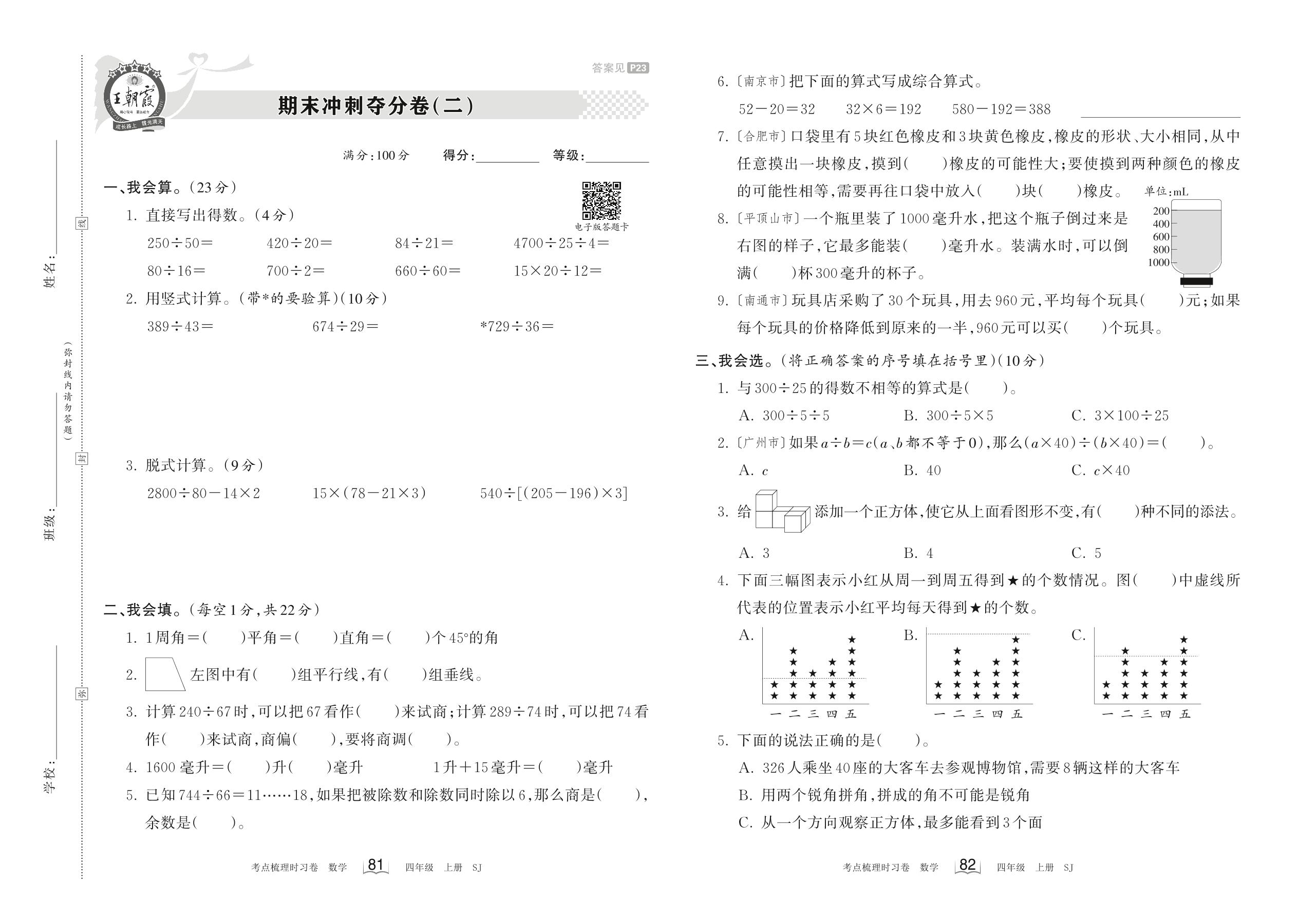 2023上册四年级数学苏教版 期末冲刺夺分卷(二)