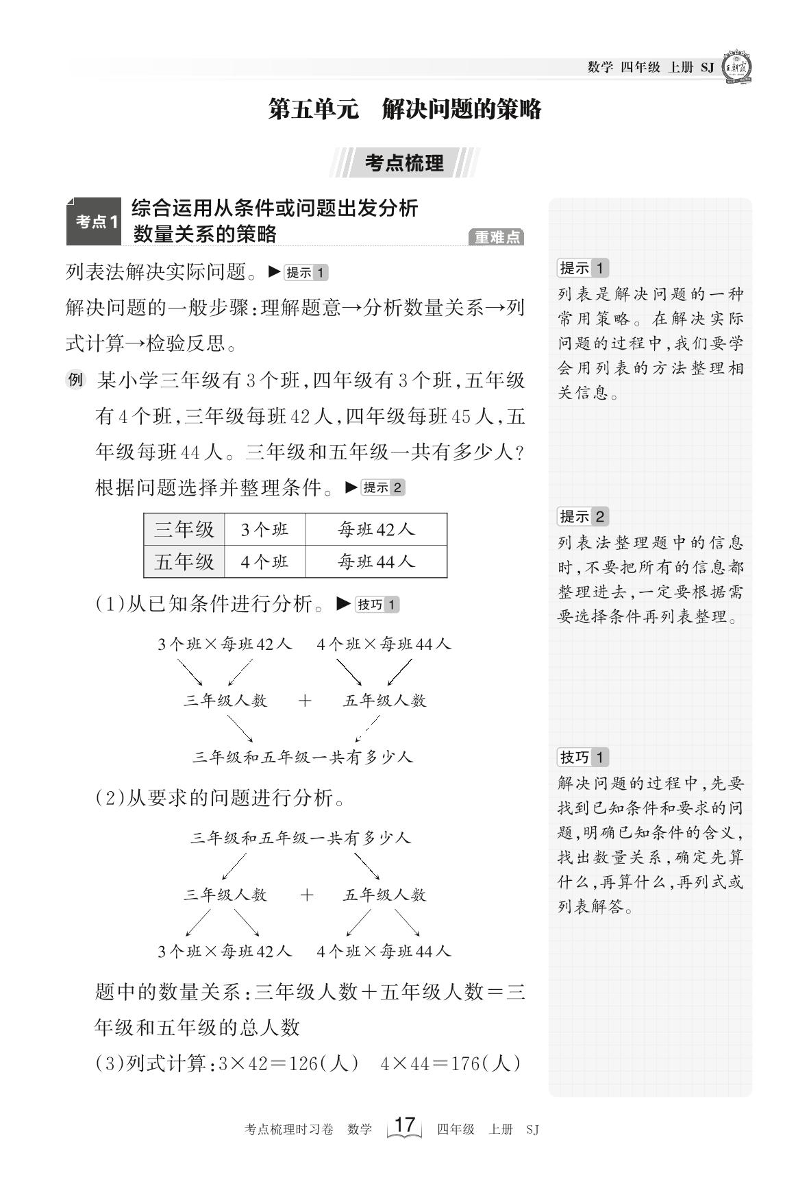 2023上册四年级数学苏教版 考点梳理手册——第五单元 解决问题的策略