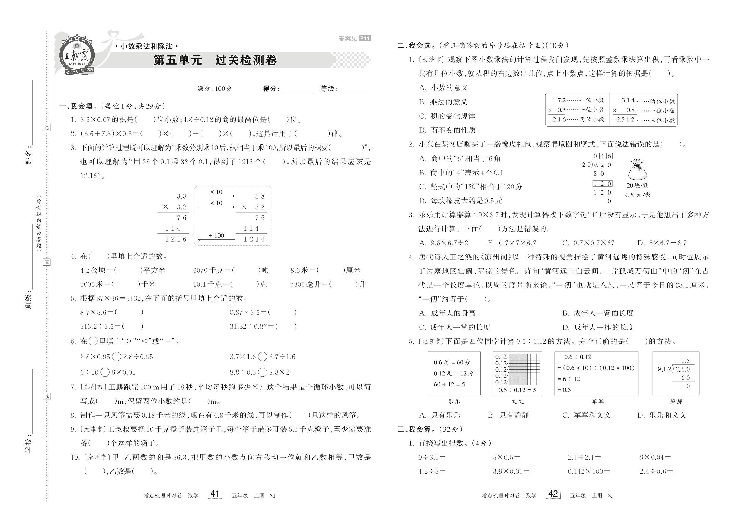 2023上册五年级数学苏教版 第五单元 过关检测卷