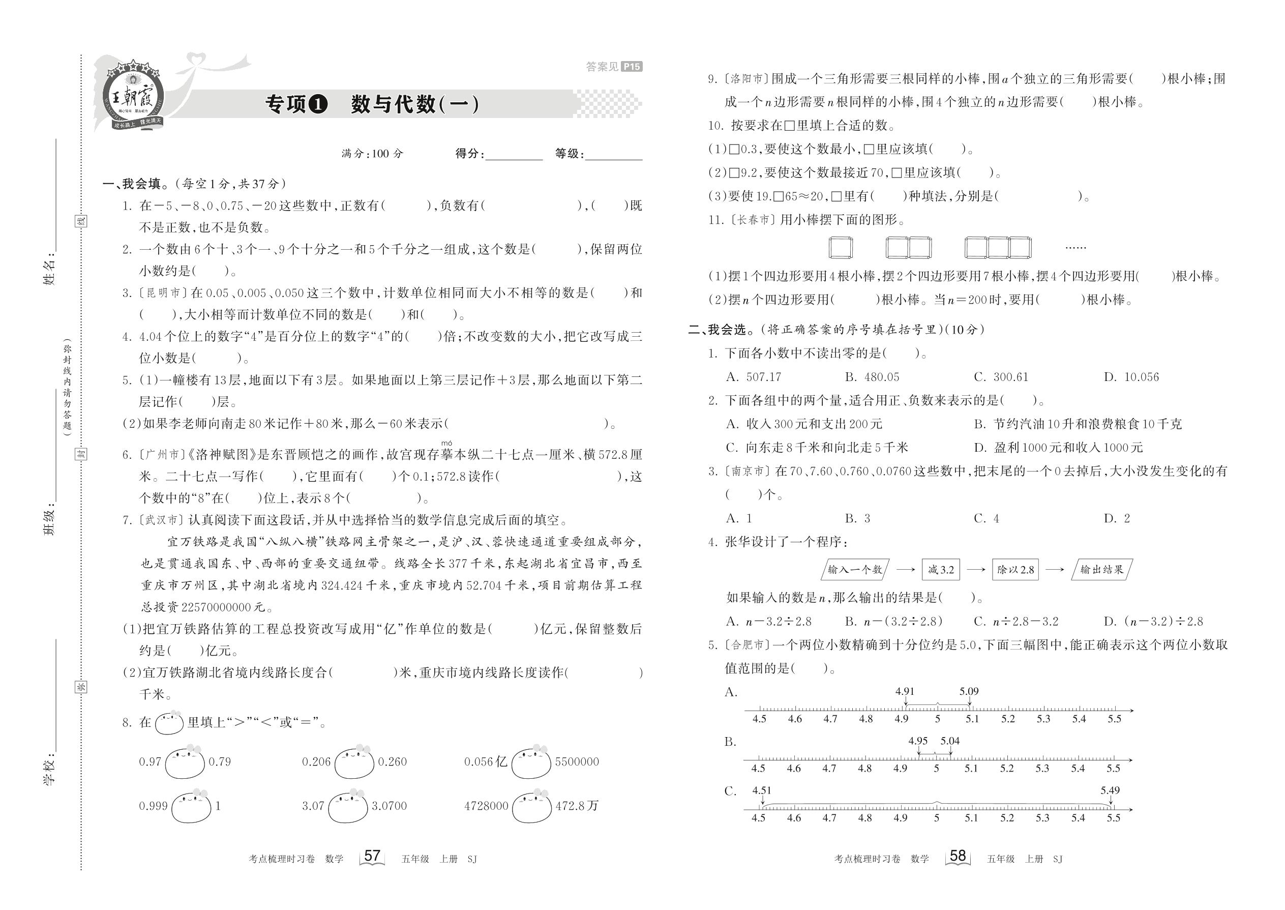 2023上册五年级数学苏教版 专项1 数与代数(一)