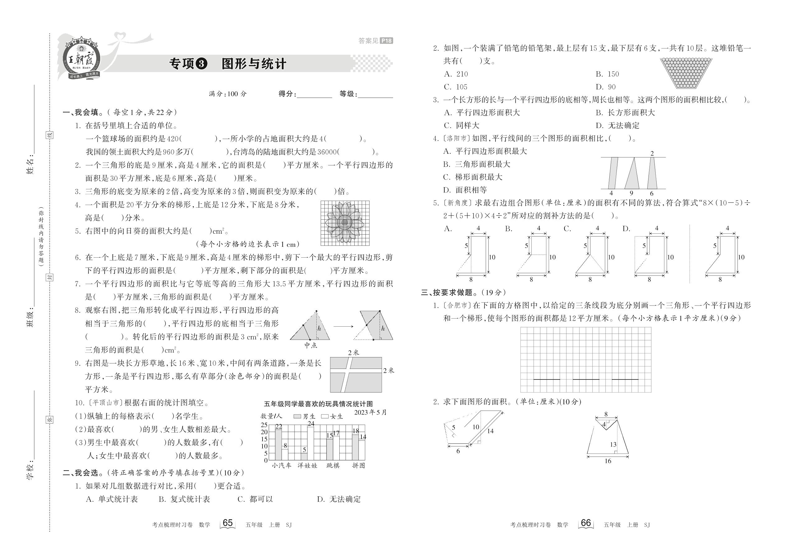 2023上册五年级数学苏教版 专项3 图形与统计