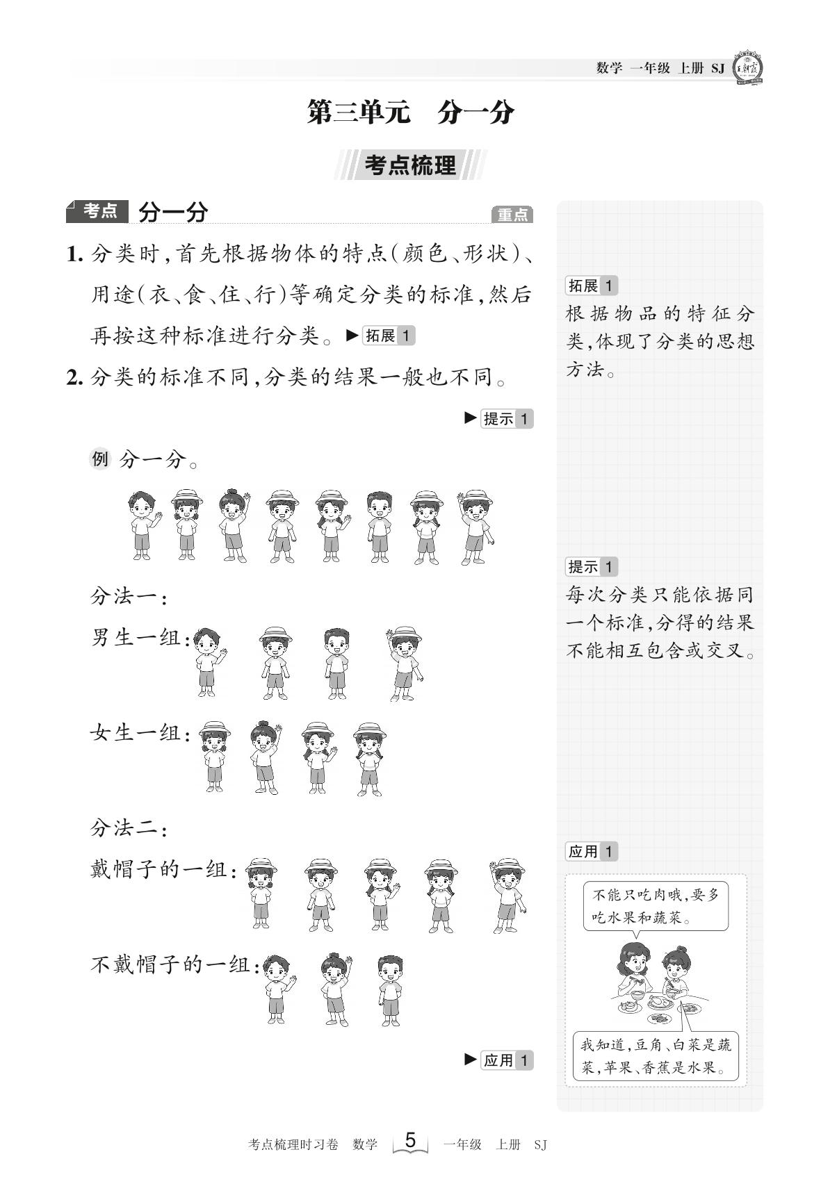 2023上册一年级数学苏教版 考点梳理手册——第三单元 分一分
