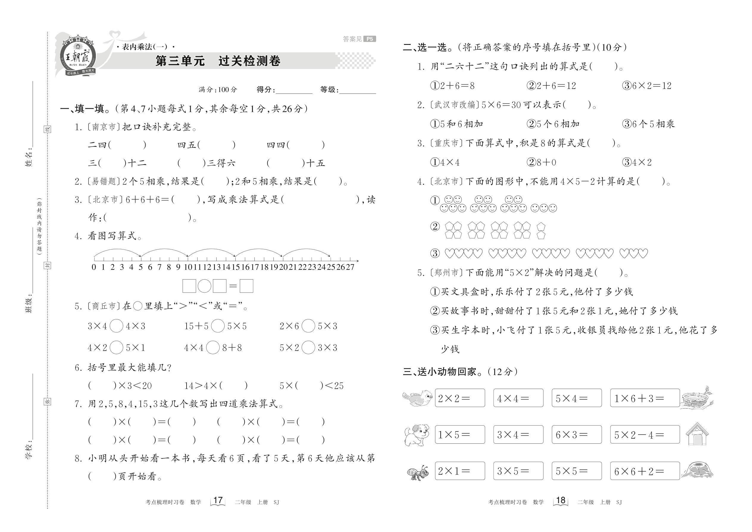 2023上册二年级数学苏教版 第三单元 过关检测卷
