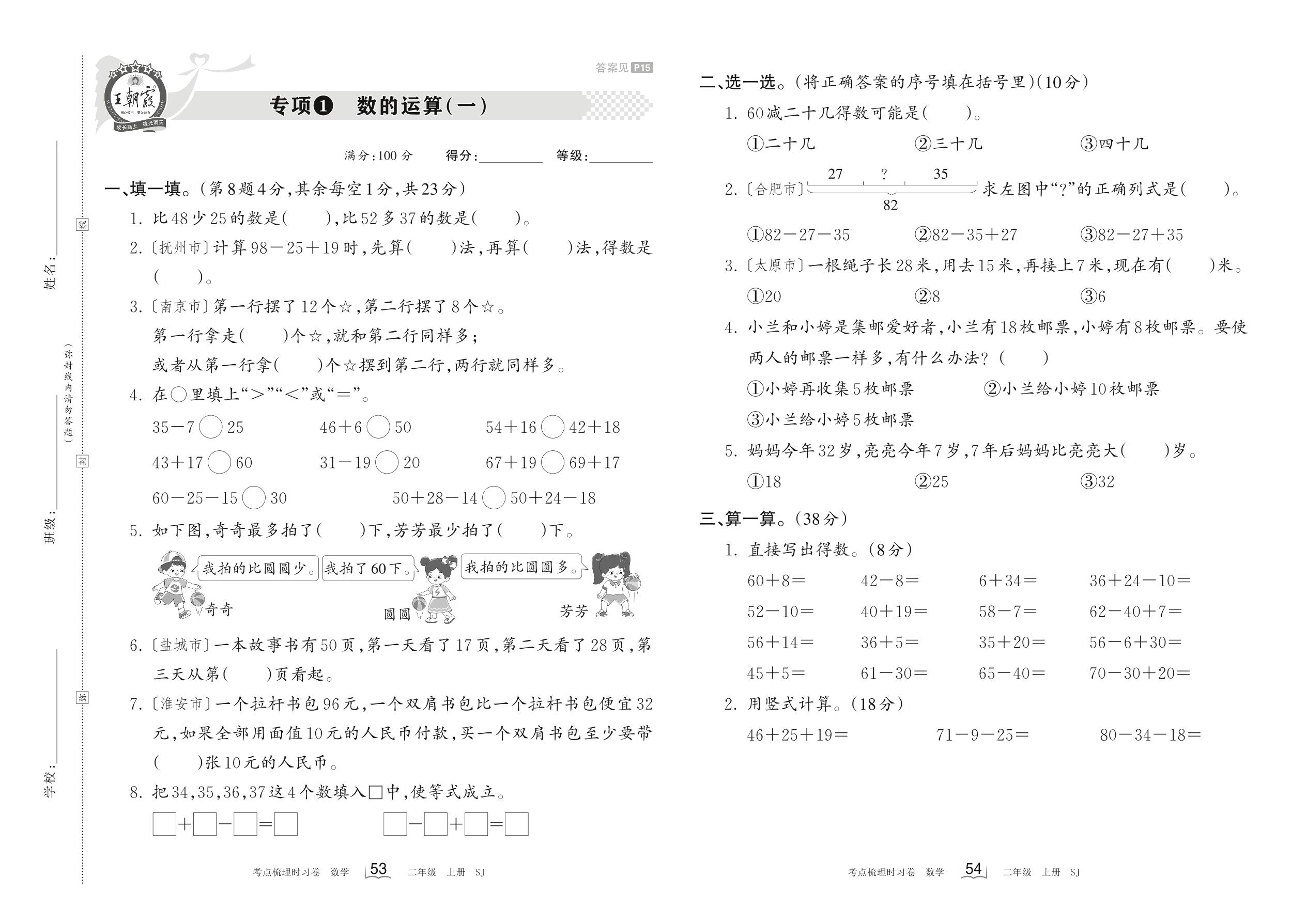 2023上册二年级数学苏教版 专项1 数的运算(一)