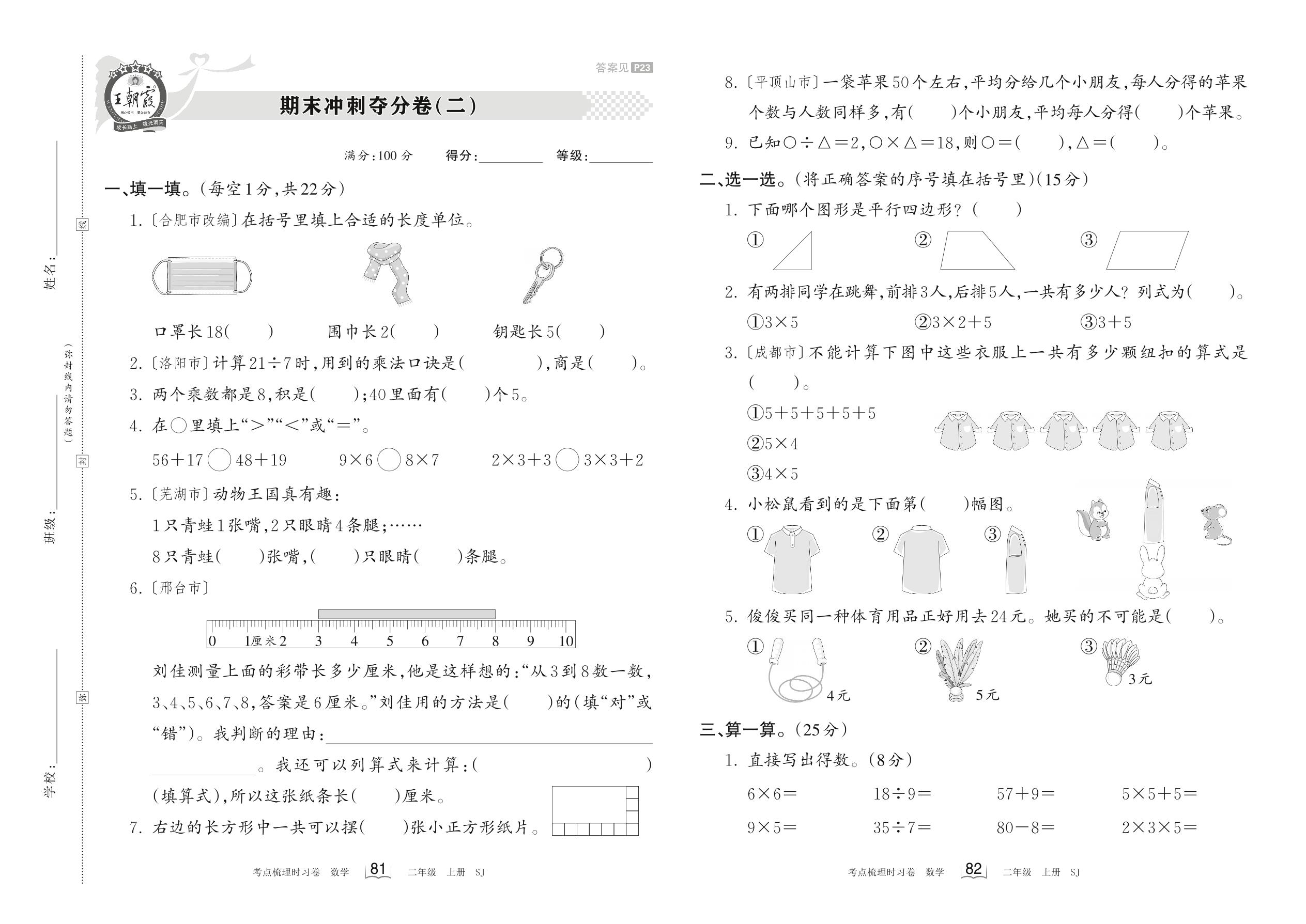 2023上册二年级数学苏教版 期末冲刺夺分卷(二)