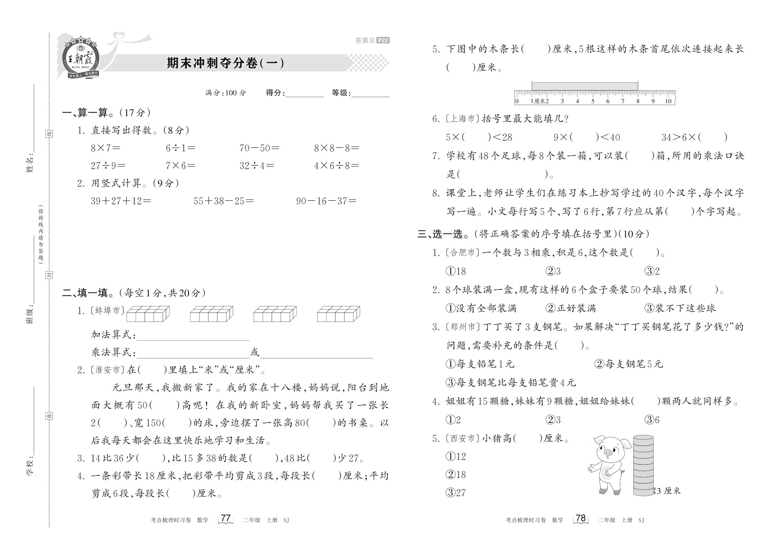 2023上册二年级数学苏教版 期末冲刺夺分卷(一)