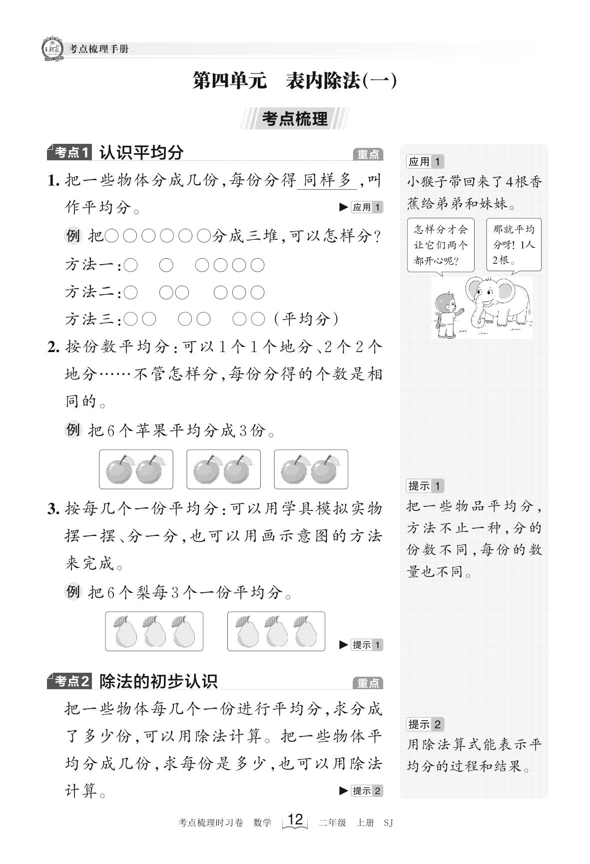 2023上册二年级数学苏教版 考点梳理手册——第四单元 表内除法(一)