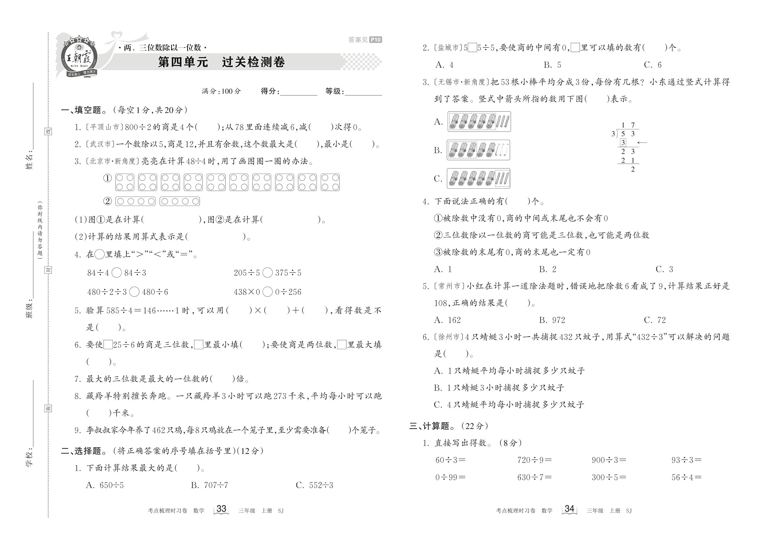三年级数学苏教版上册单元卷