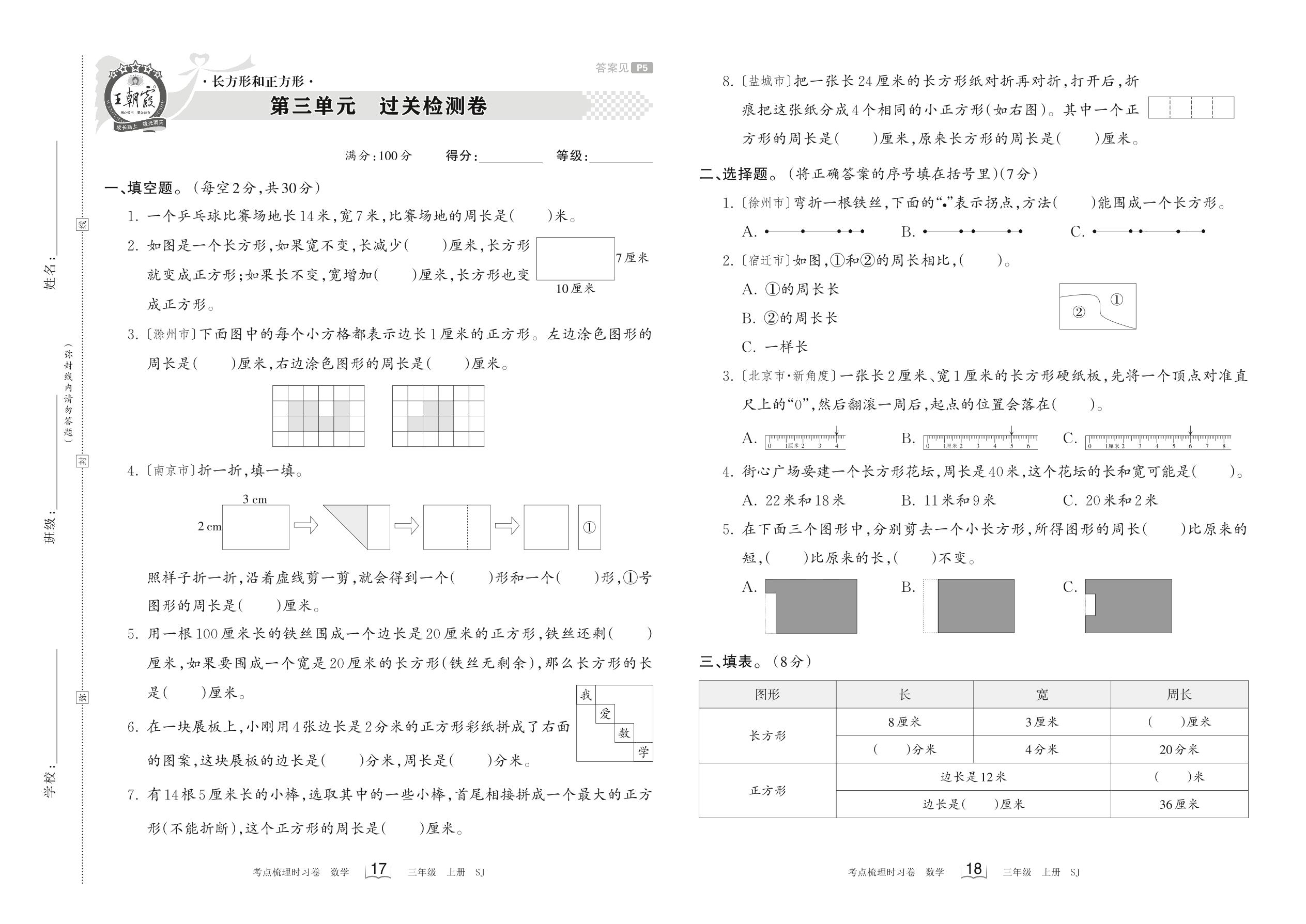 三年级数学苏教版上册单元卷
