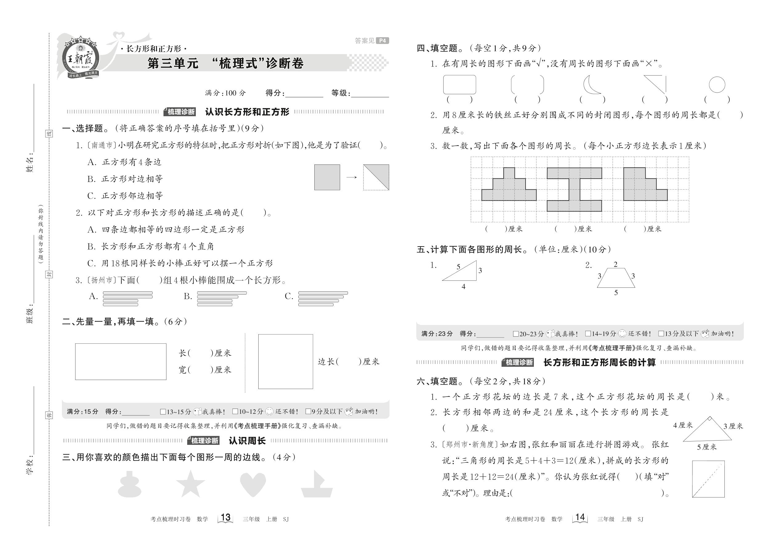 2023上册三年级数学苏教版 第三单元 “梳理式”诊断卷