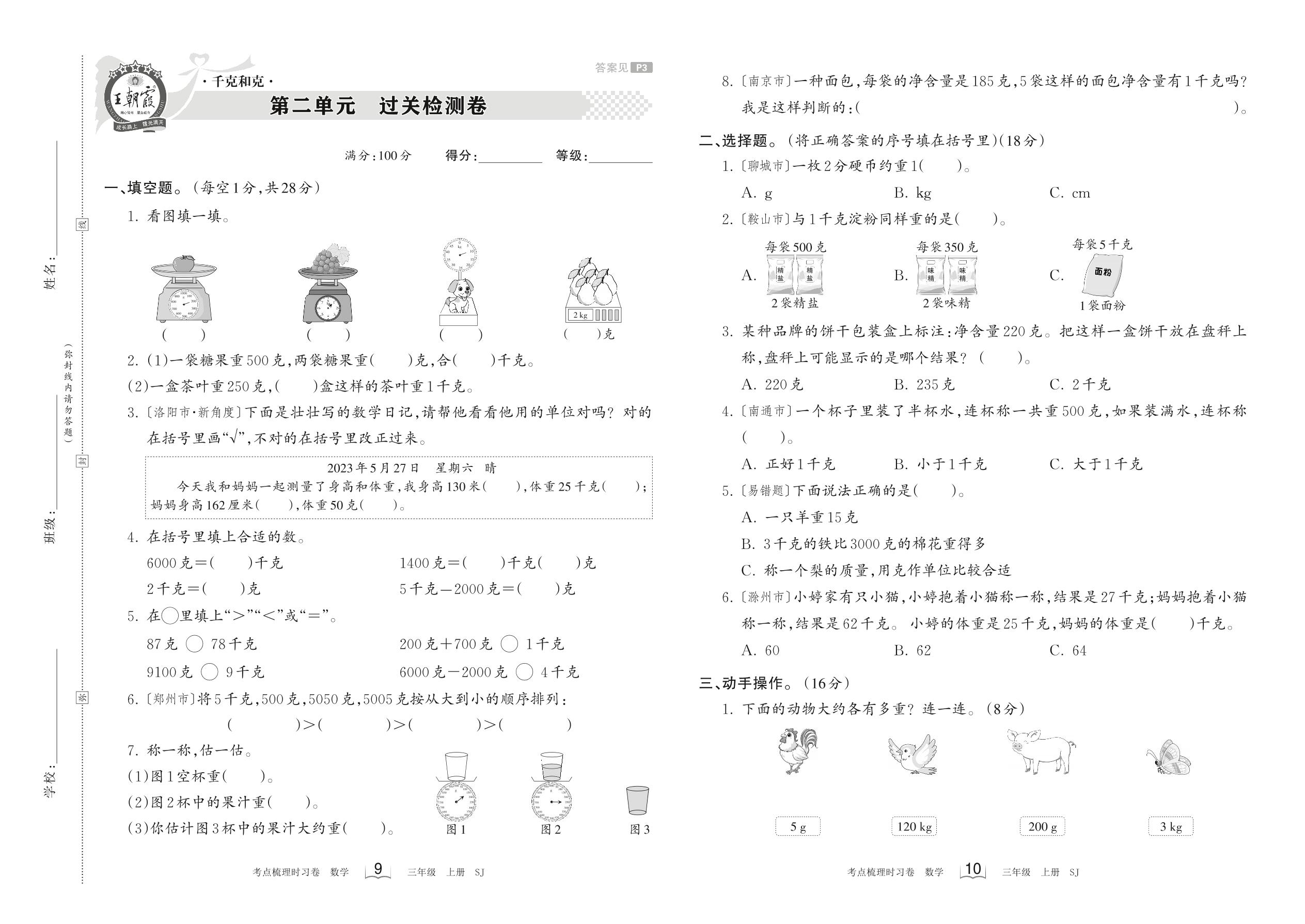 2023上册三年级数学苏教版 第二单元 过关检测卷