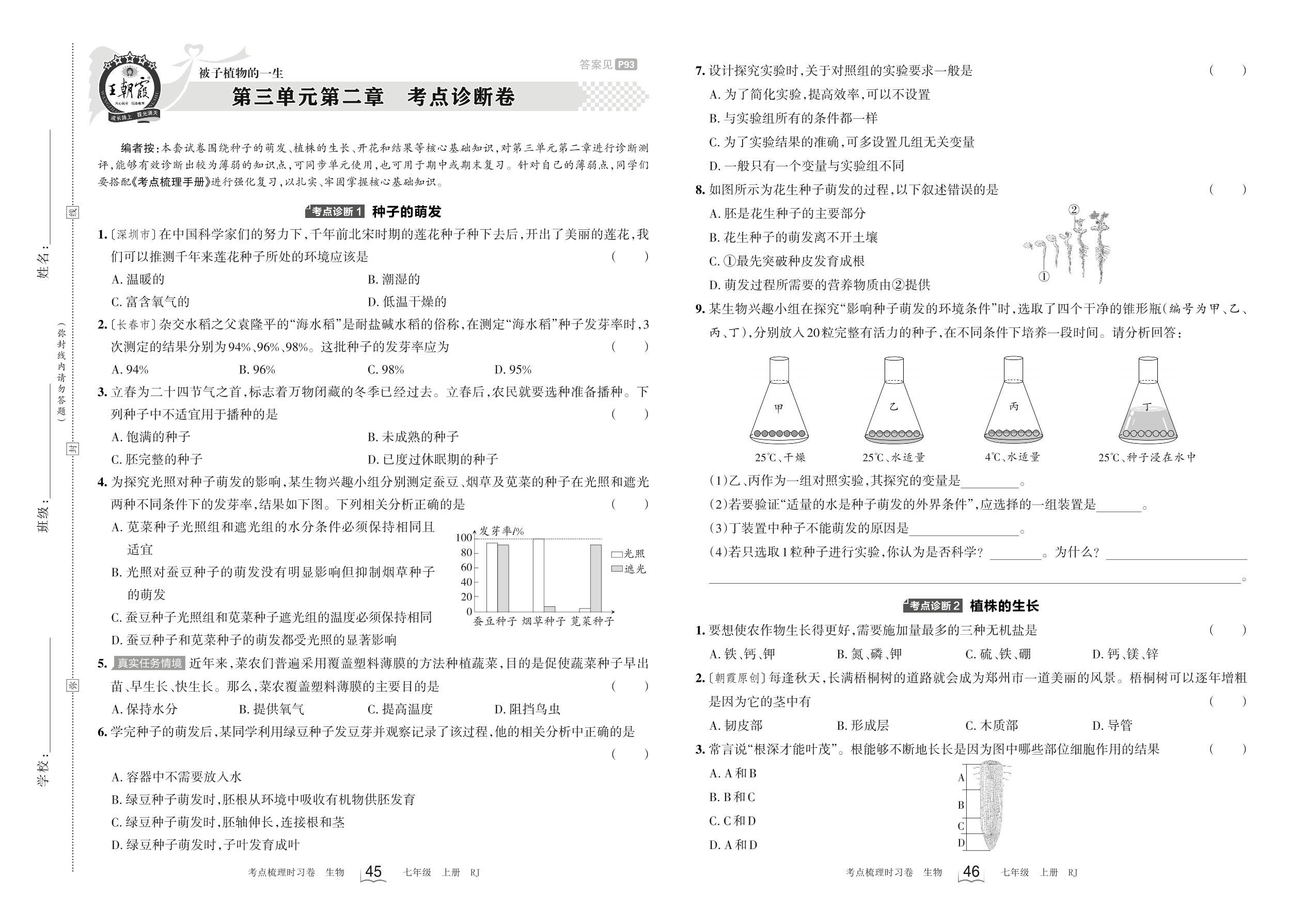 2023上册七年级生物人教版 第三单元第二章 考点诊断卷