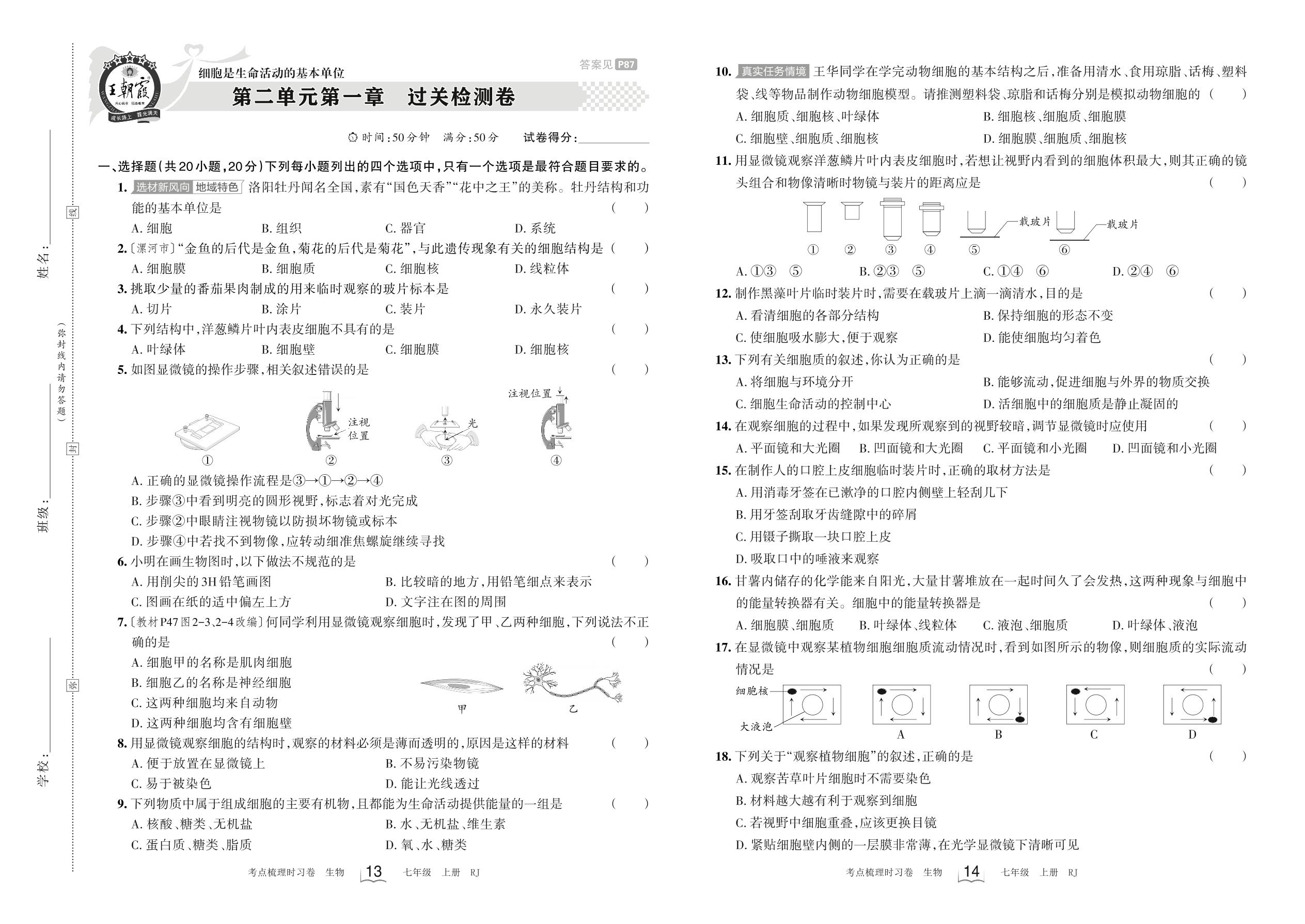 七年级生物人教版上册单元卷