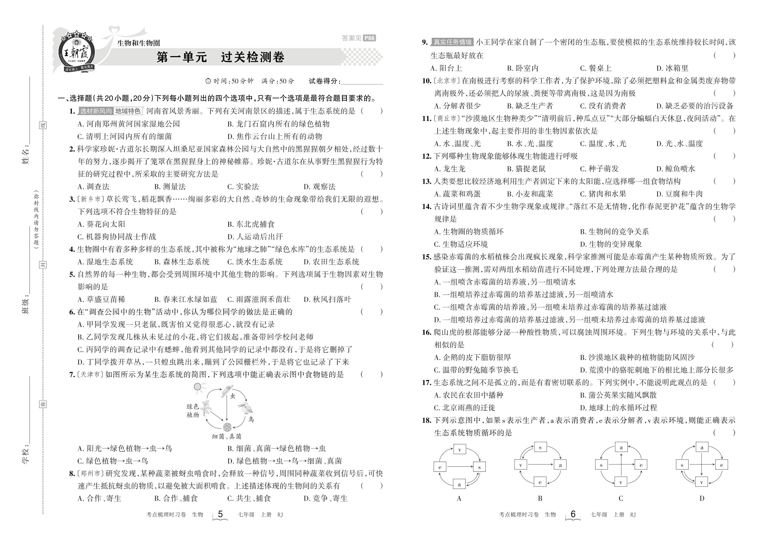 2023上册七年级生物人教版 第一单元 过关检测卷