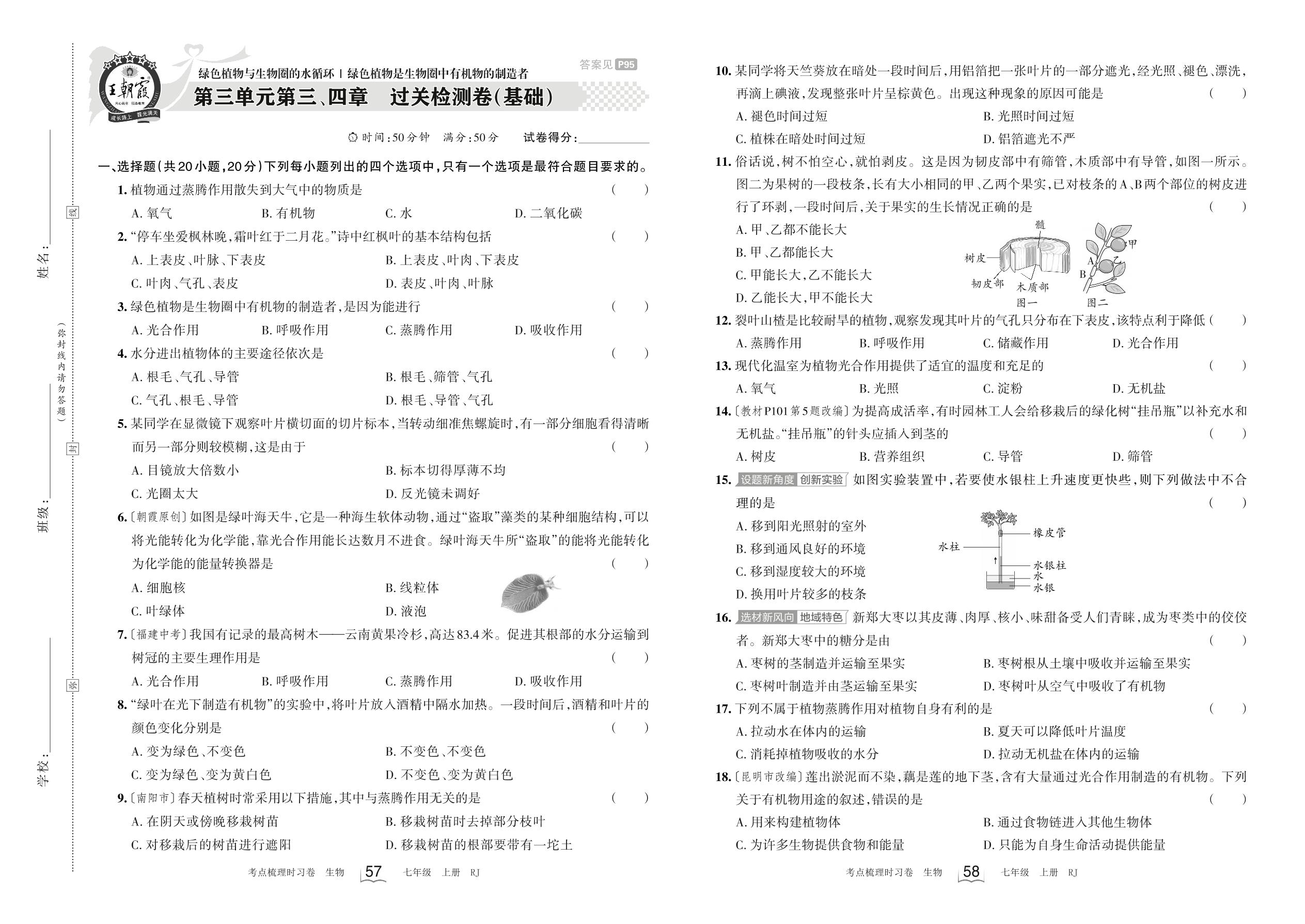 七年级生物人教版上册单元卷
