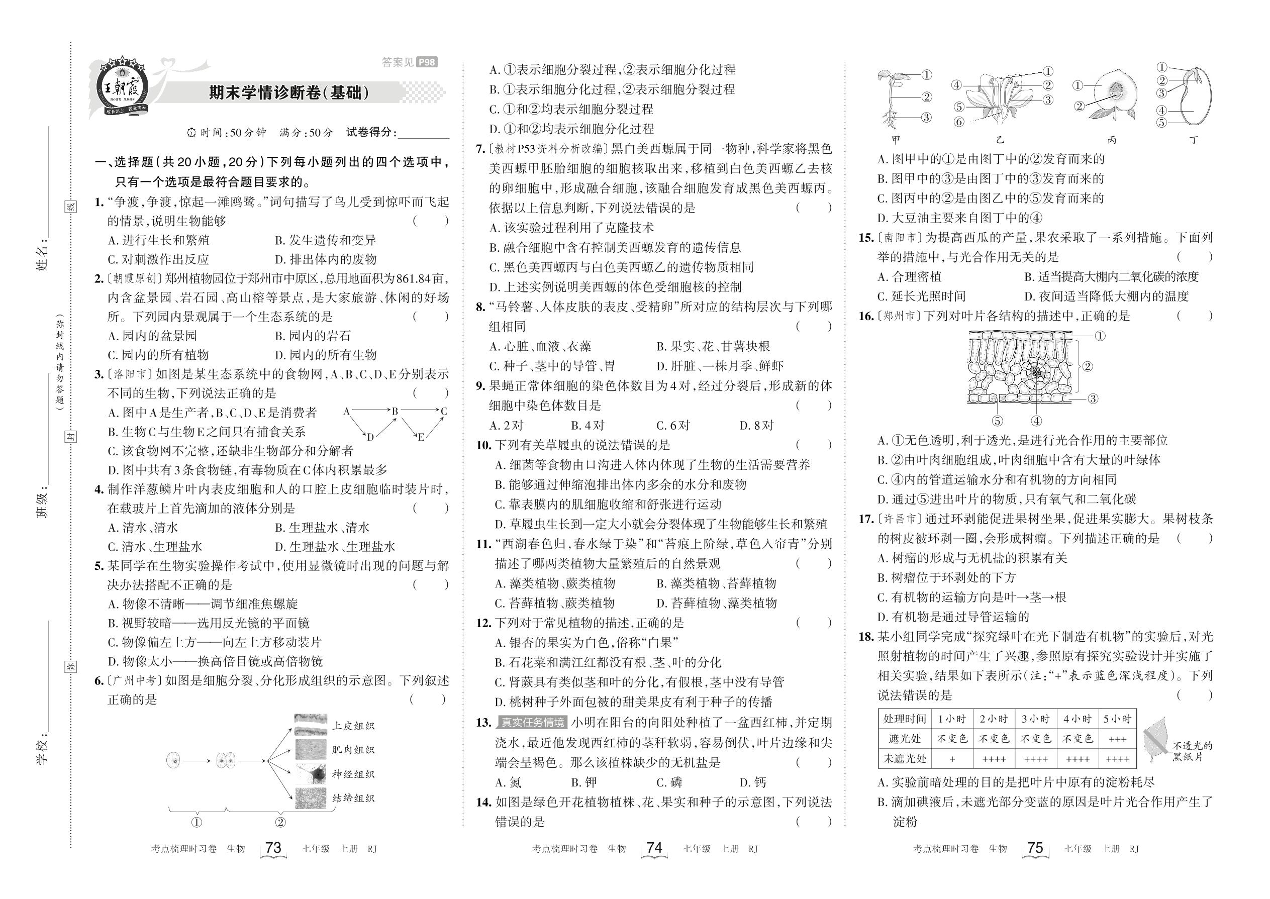 2023上册七年级生物人教版 期末学情诊断卷(基础)