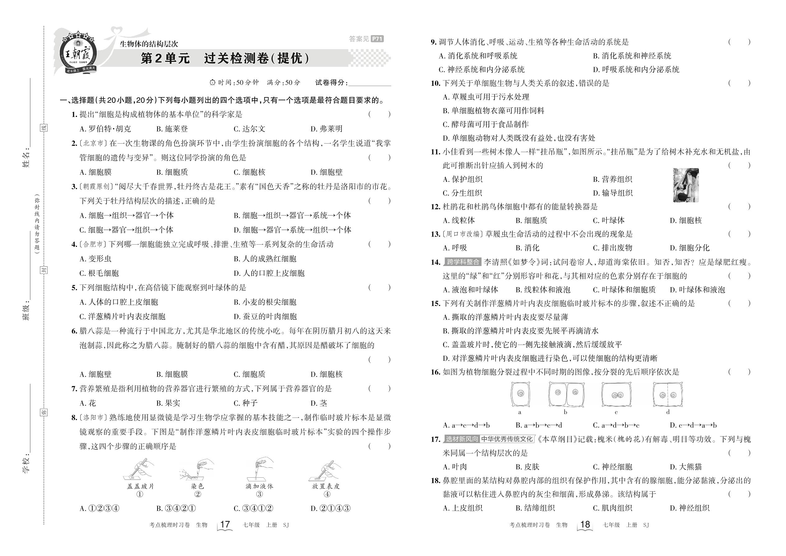 2023上册七年级生物苏教版 第2单元 过关检测卷(提优)