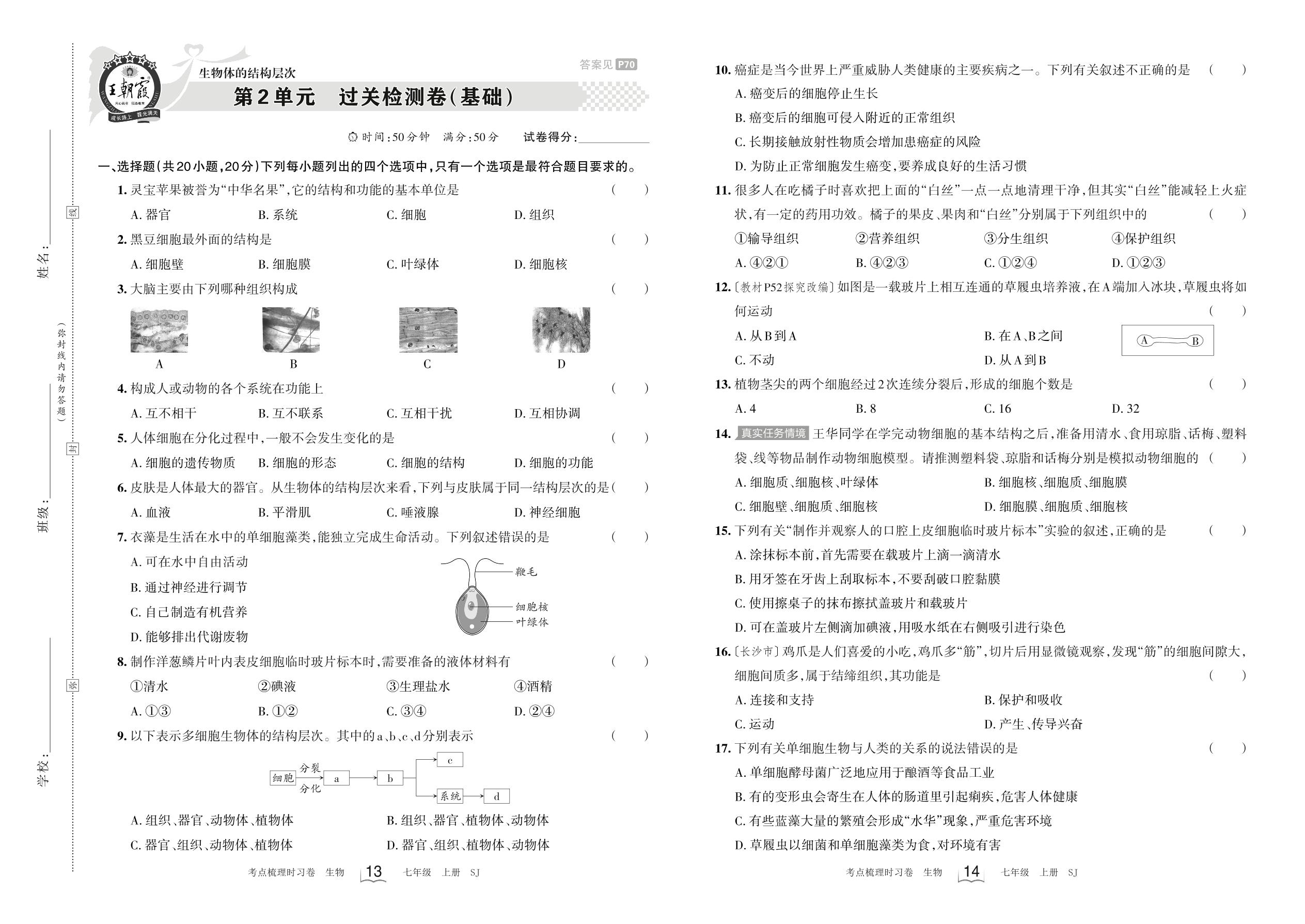 七年级生物苏教版上册单元卷