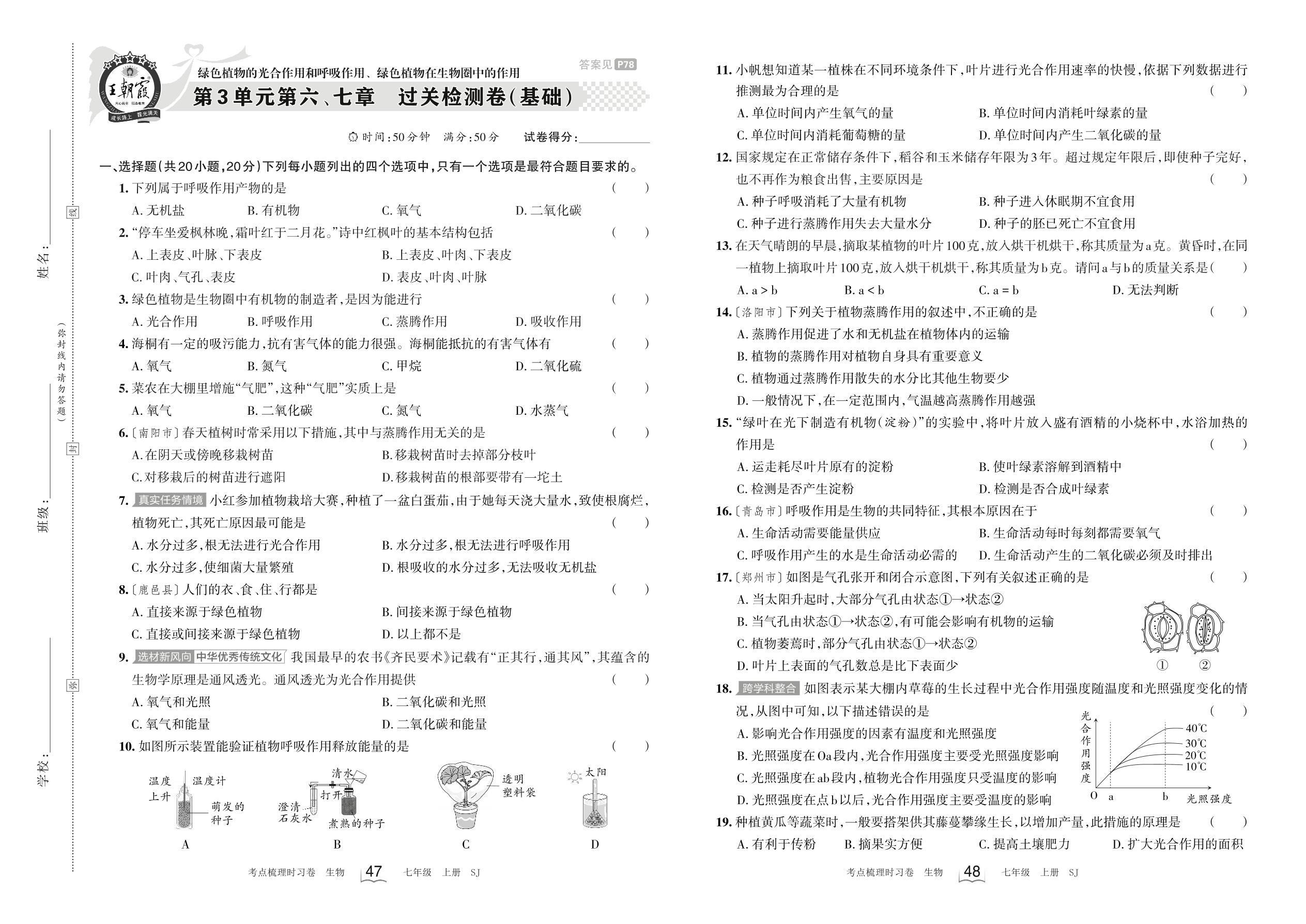 七年级生物苏教版上册单元卷
