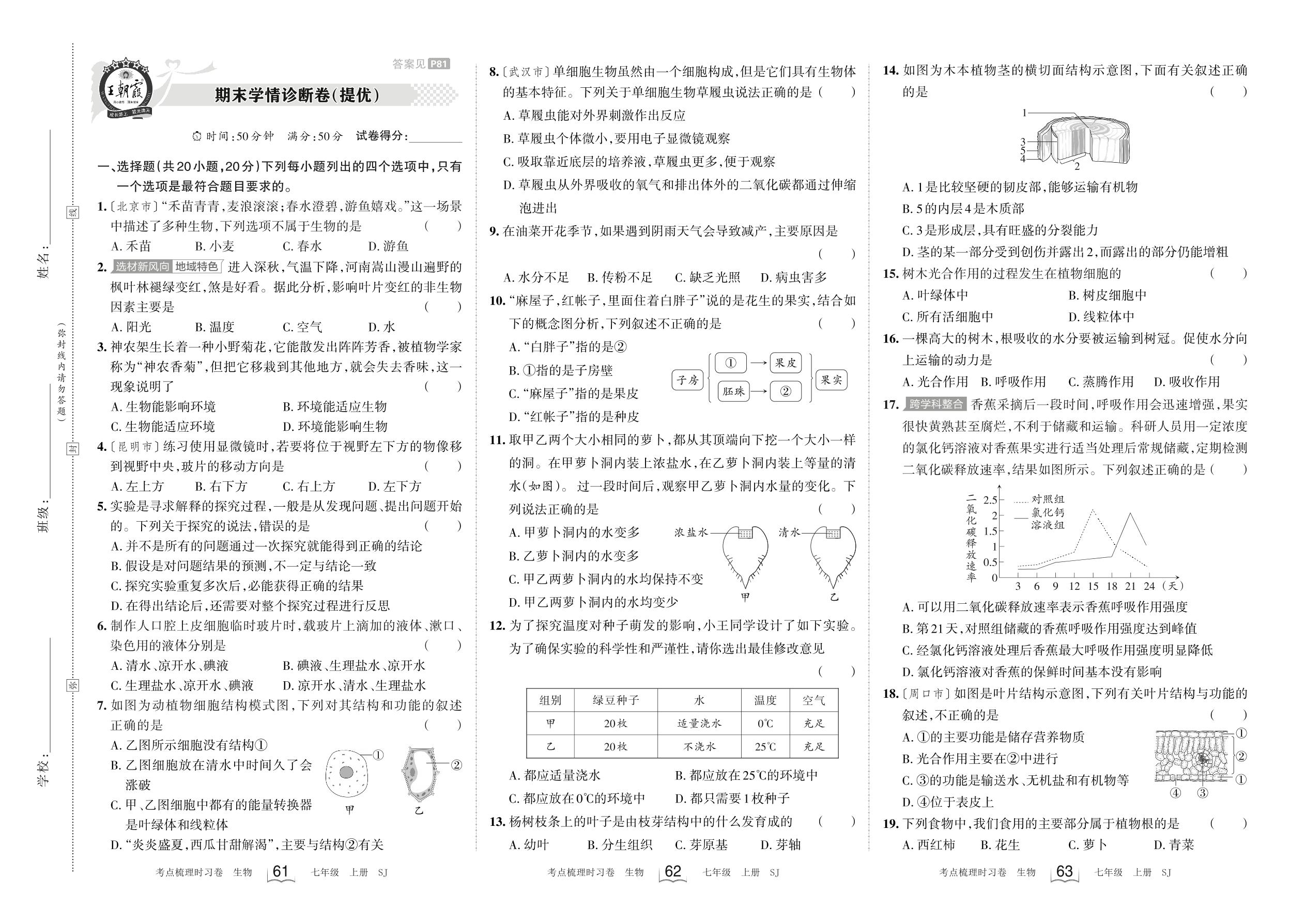 2023上册七年级生物苏教版 期末学情诊断卷(提优)