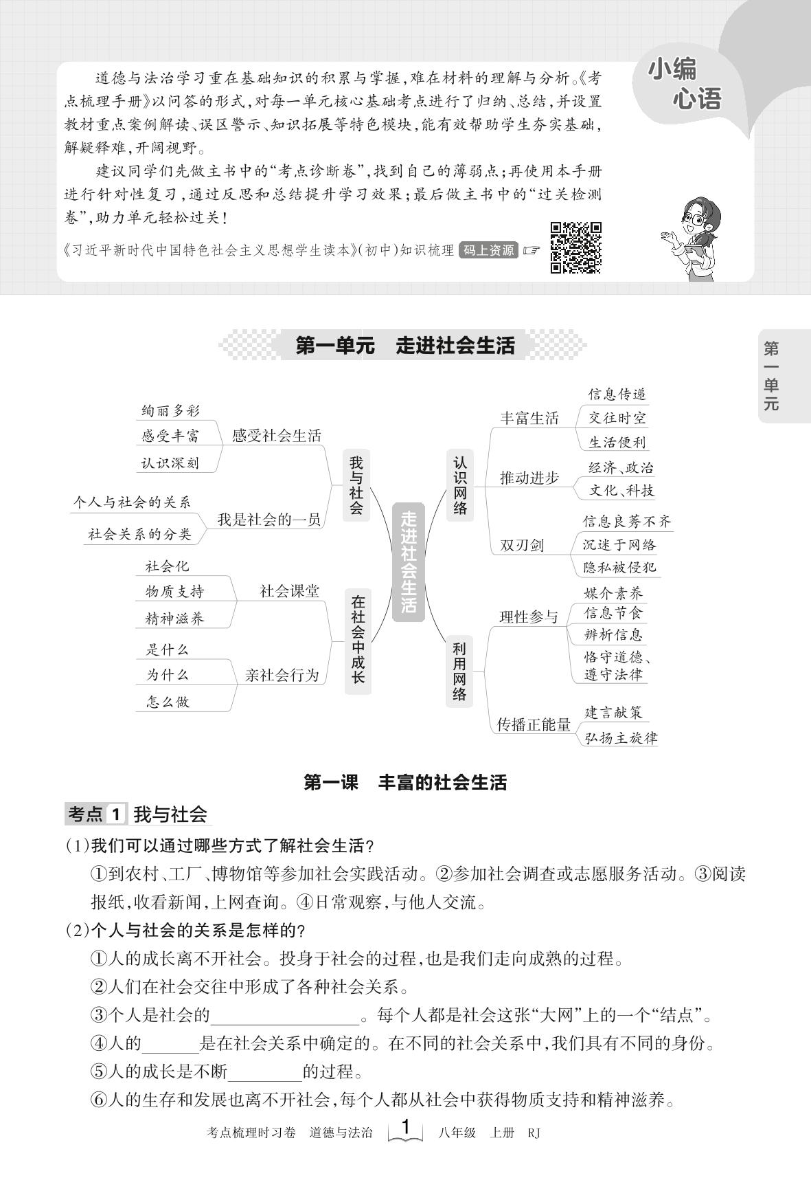 2023上册八年级道德与法治人教版 考点梳理手册——第一单元 成长的节拍
