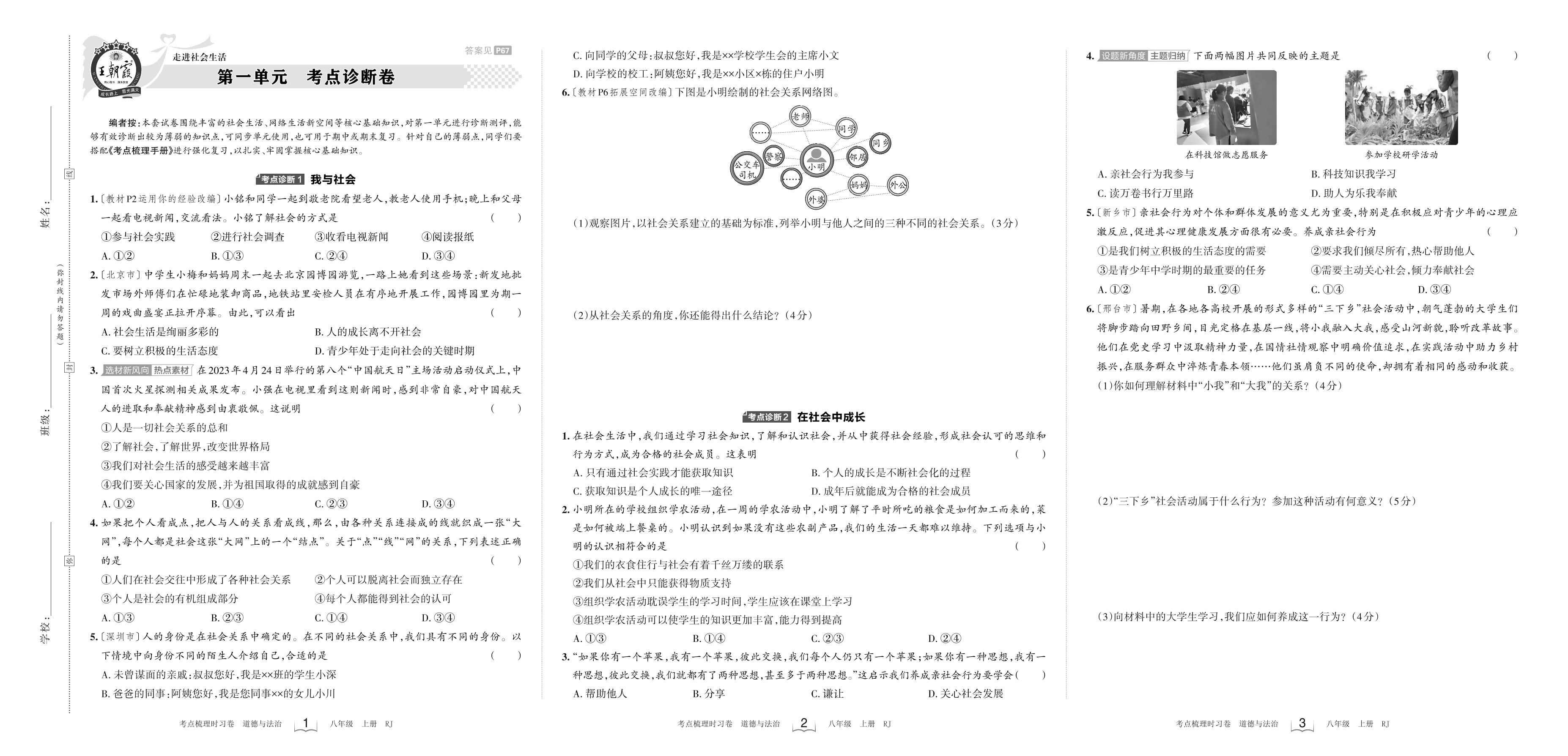 2023上册八年级道德与法治人教版 第一单元 考点诊断卷