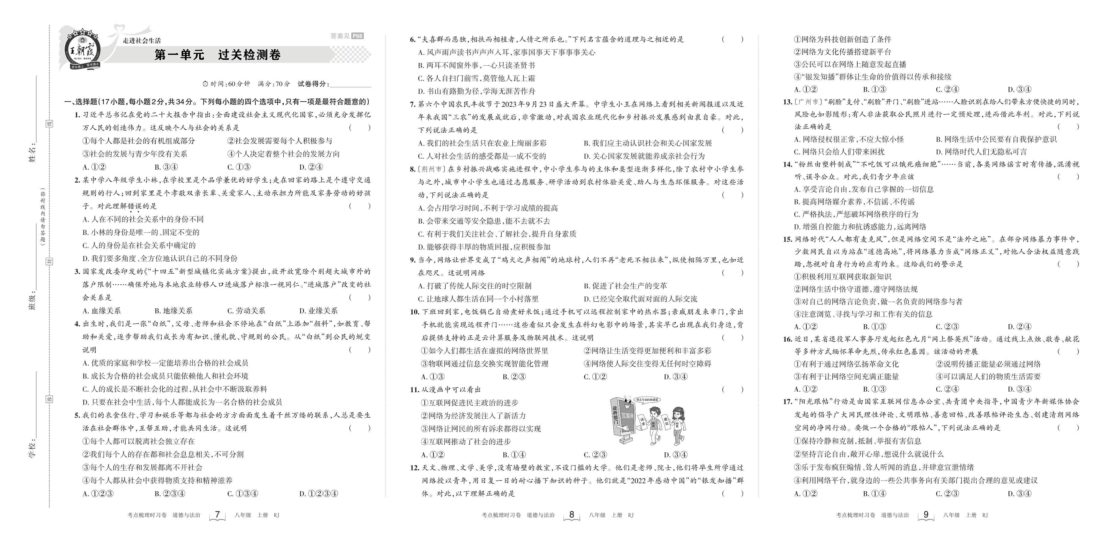 八年级道德与法治人教版上册单元卷