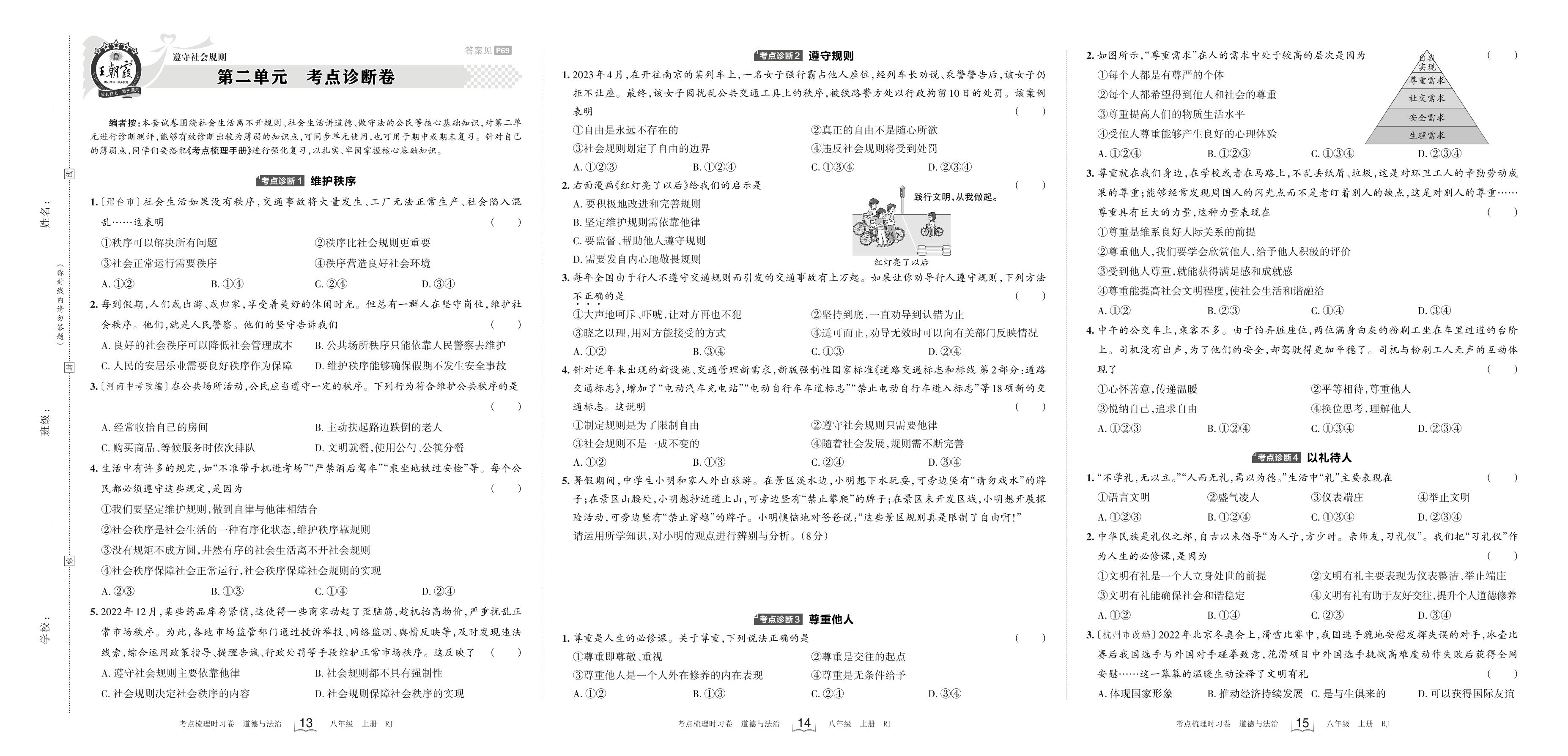 2023上册八年级道德与法治人教版 第二单元 考点诊断卷