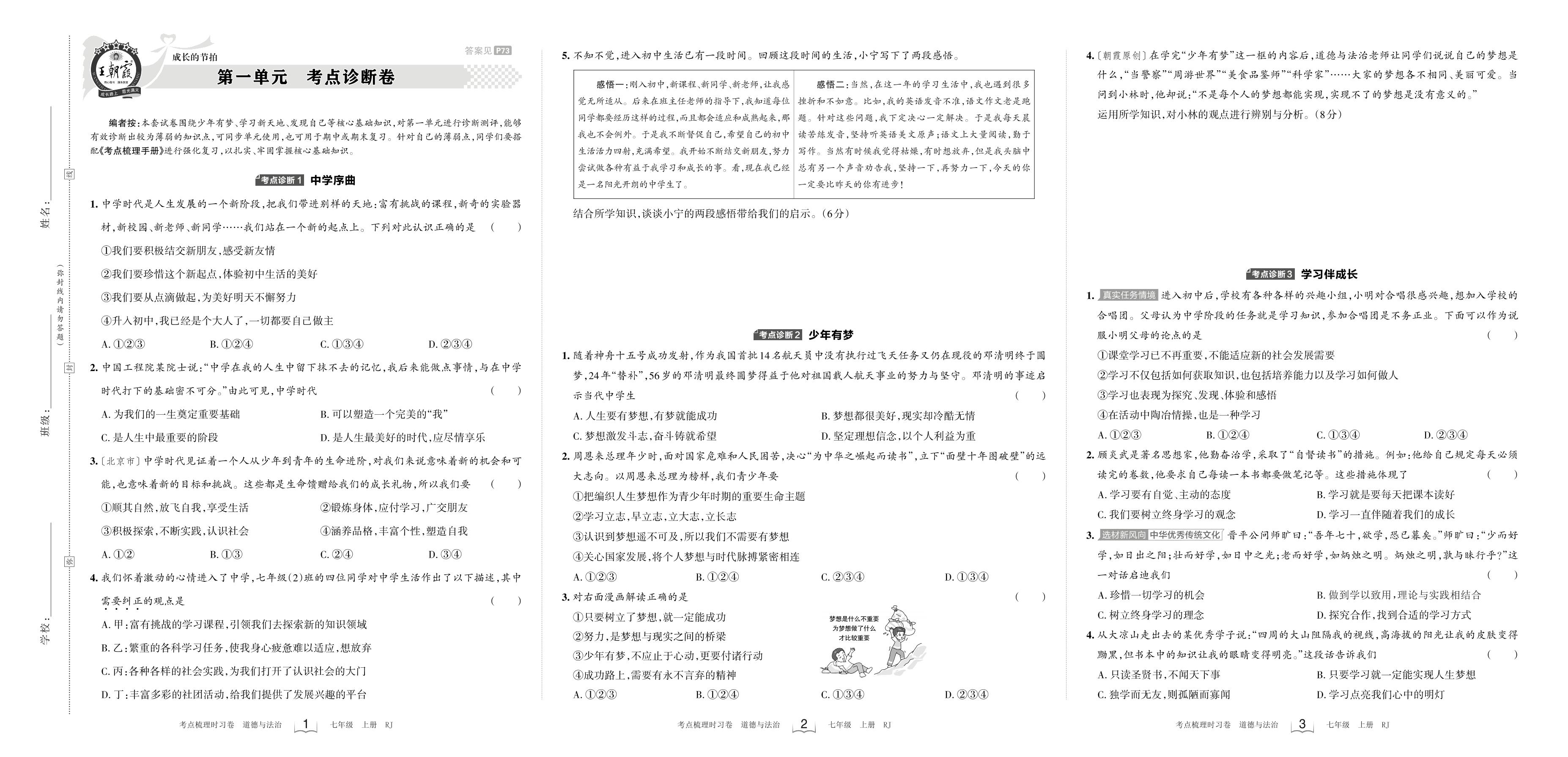 2023上册七年级道德与法治人教版 第一单元 考点诊断卷