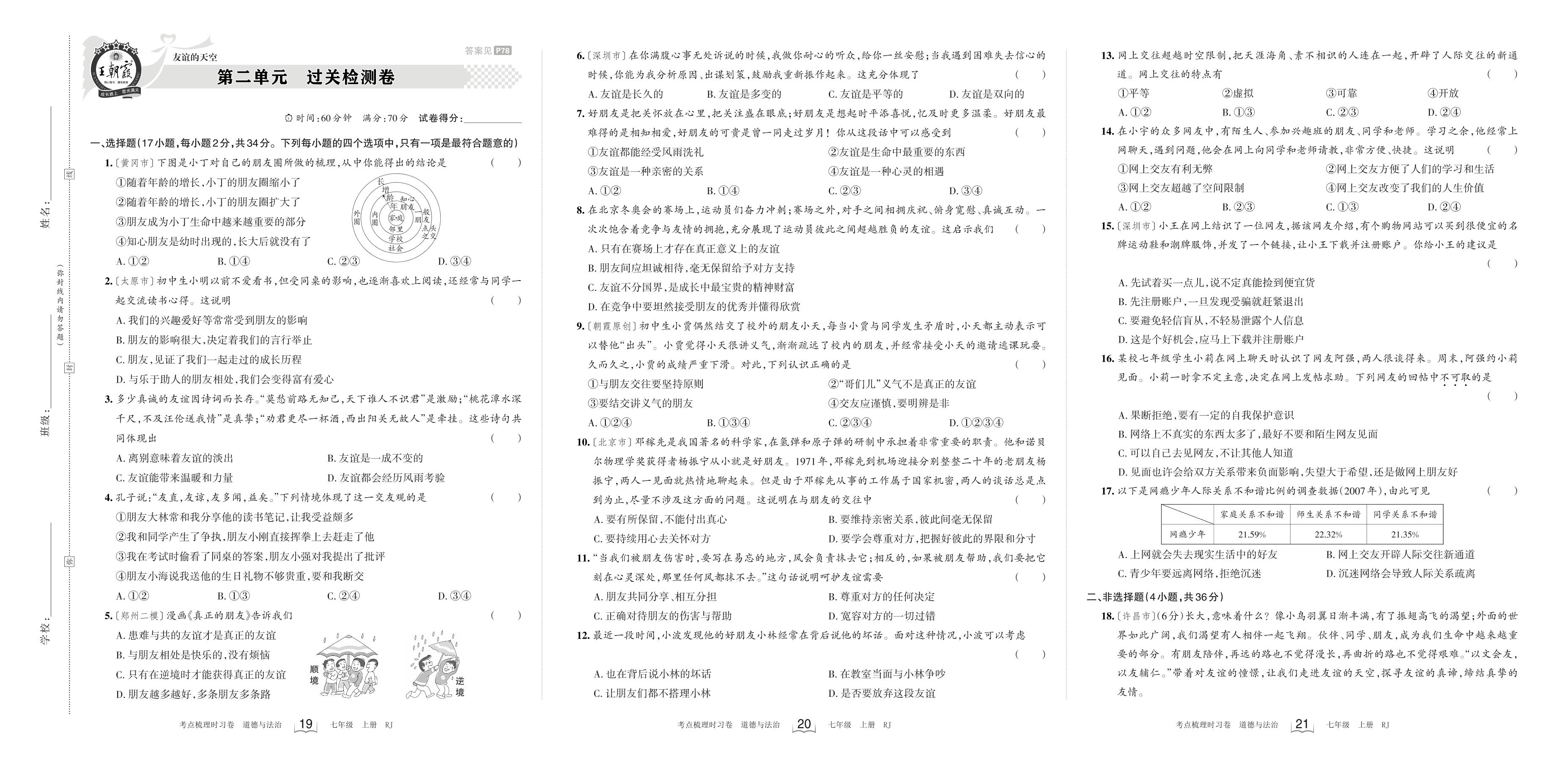 2023上册七年级道德与法治人教版 第二单元 过关检测卷