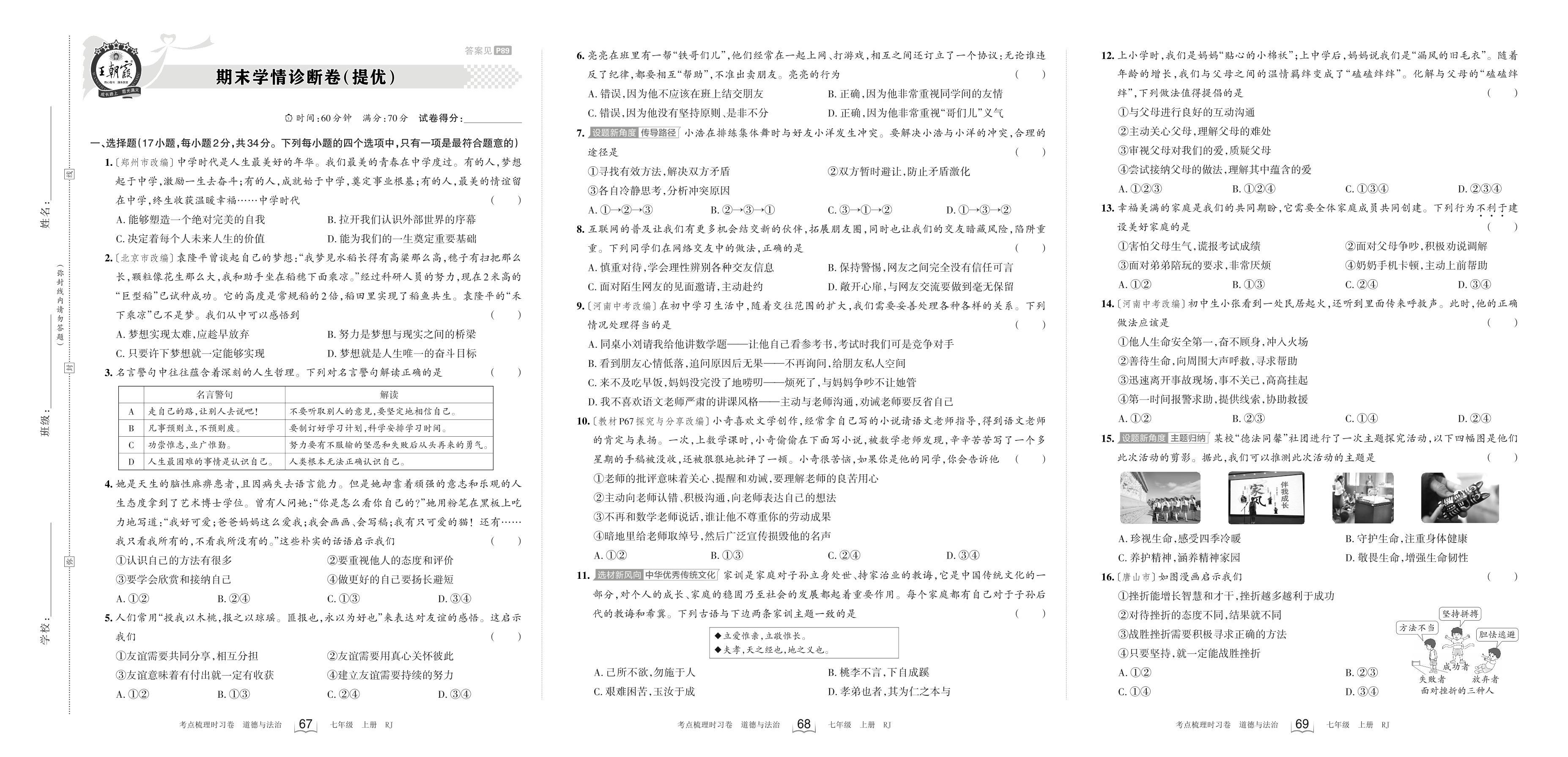 2023上册七年级道德与法治人教版 期末学情诊断卷(提优)