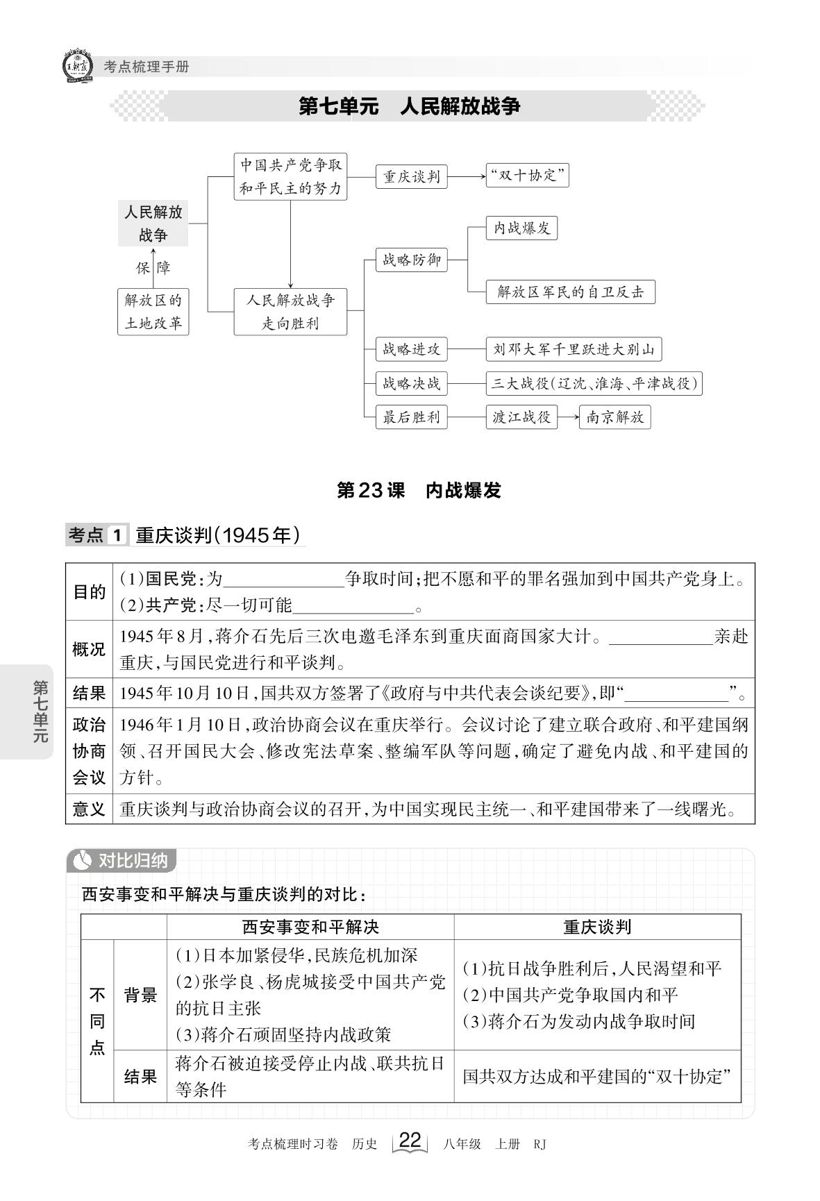 2023上册八年级历史人教版 考点梳理手册——第七单元 人民解放战争