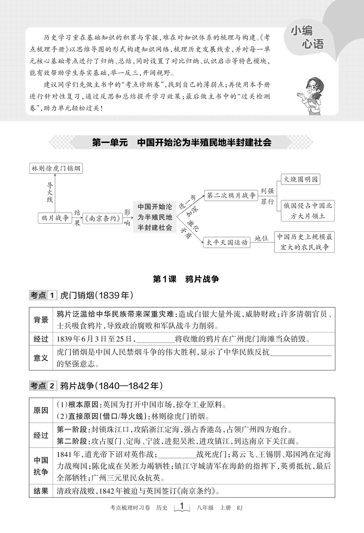 2023上册八年级历史人教版 考点梳理手册——第一单元 中国开始沦为半殖民地半封建社会