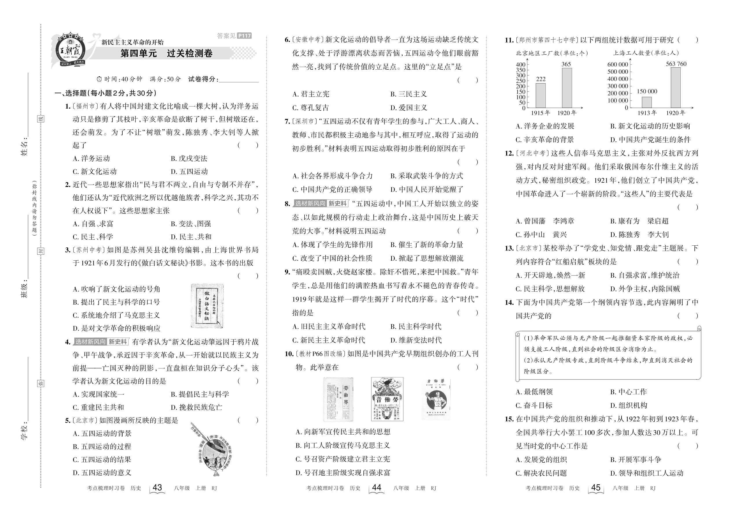 2023上册八年级历史人教版 第四单元 过关检测卷