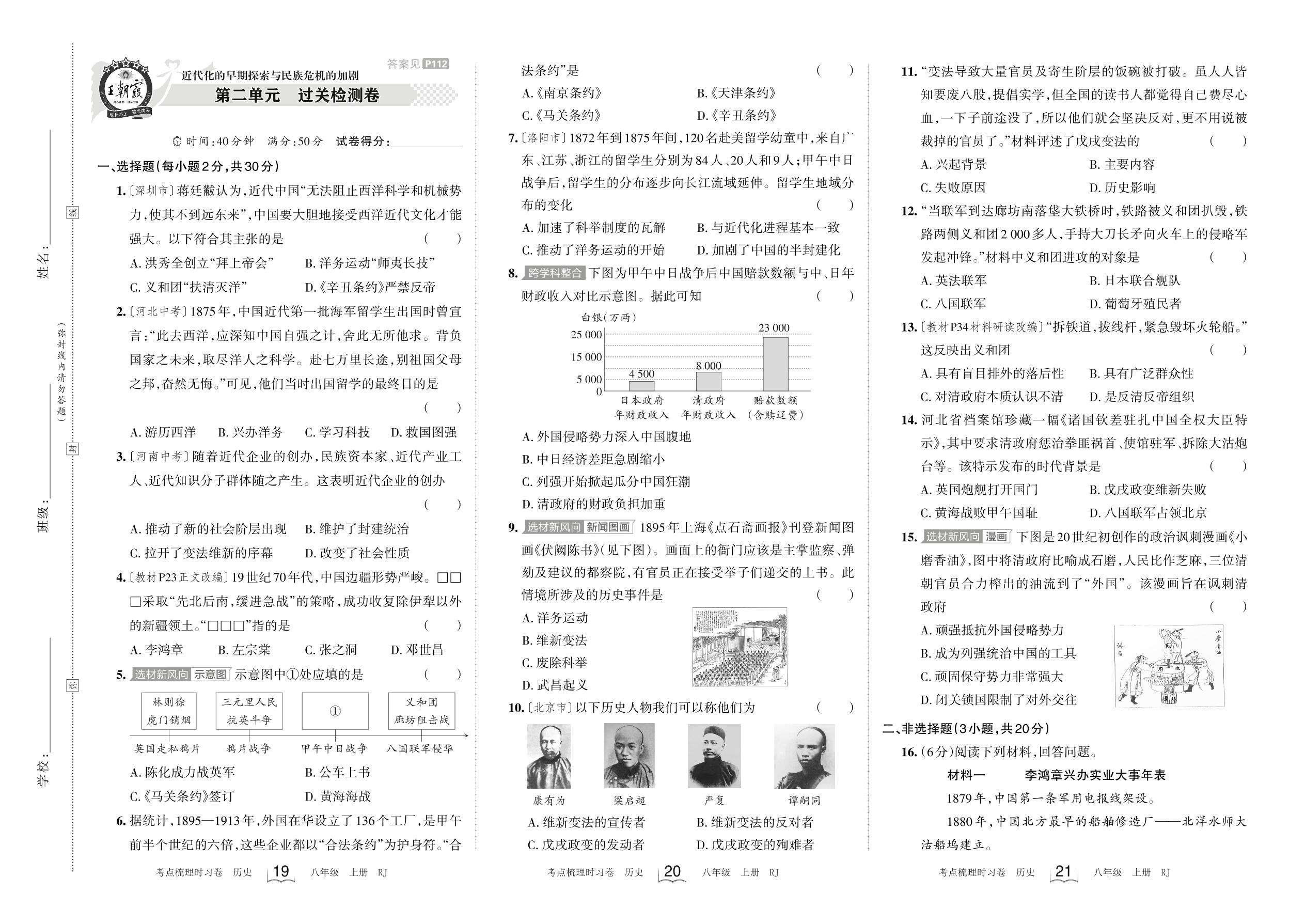 2023上册八年级历史人教版 第二单元 过关检测卷