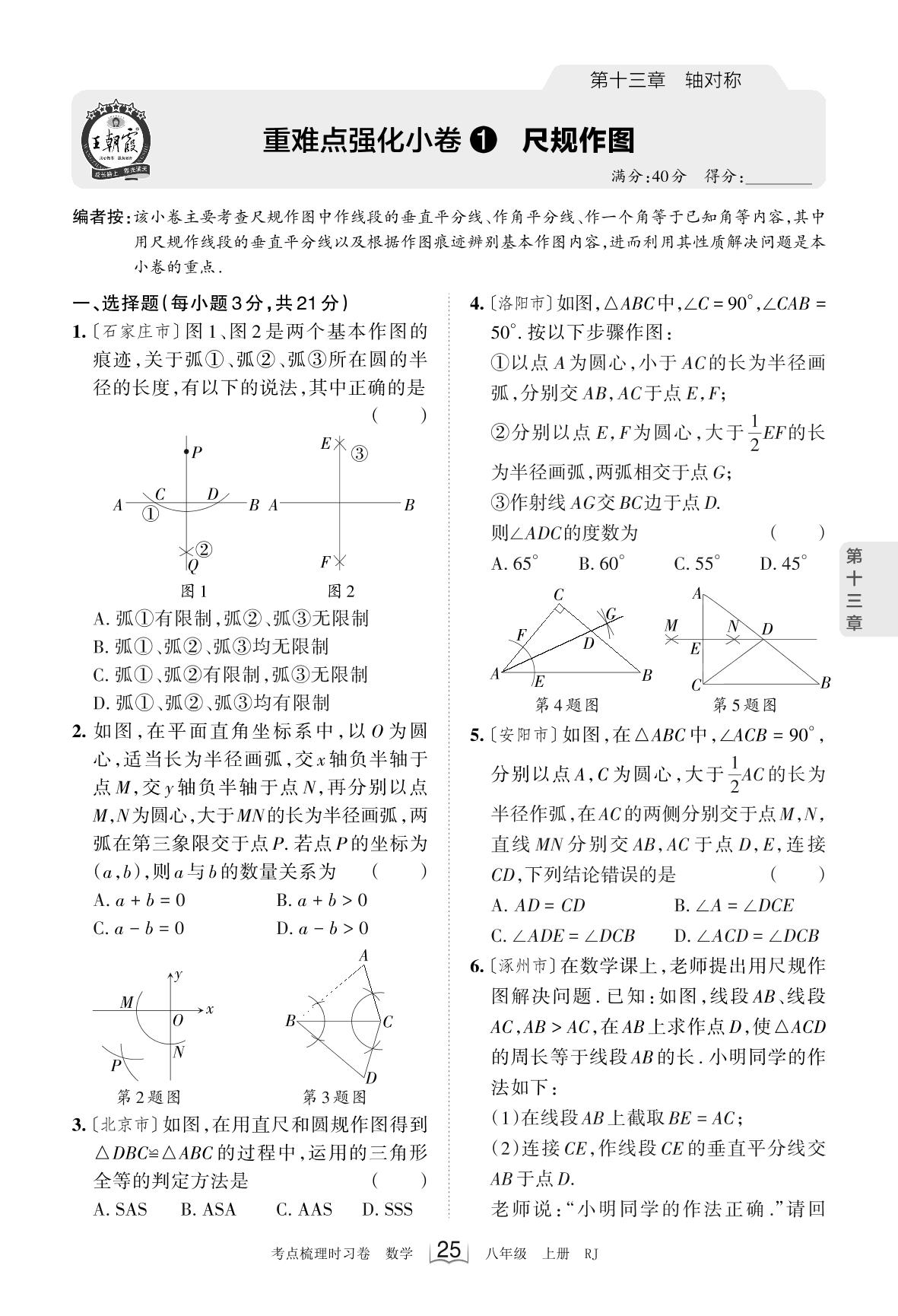 2023上册八年级数学人教版 重难点强化小卷1 尺规作图